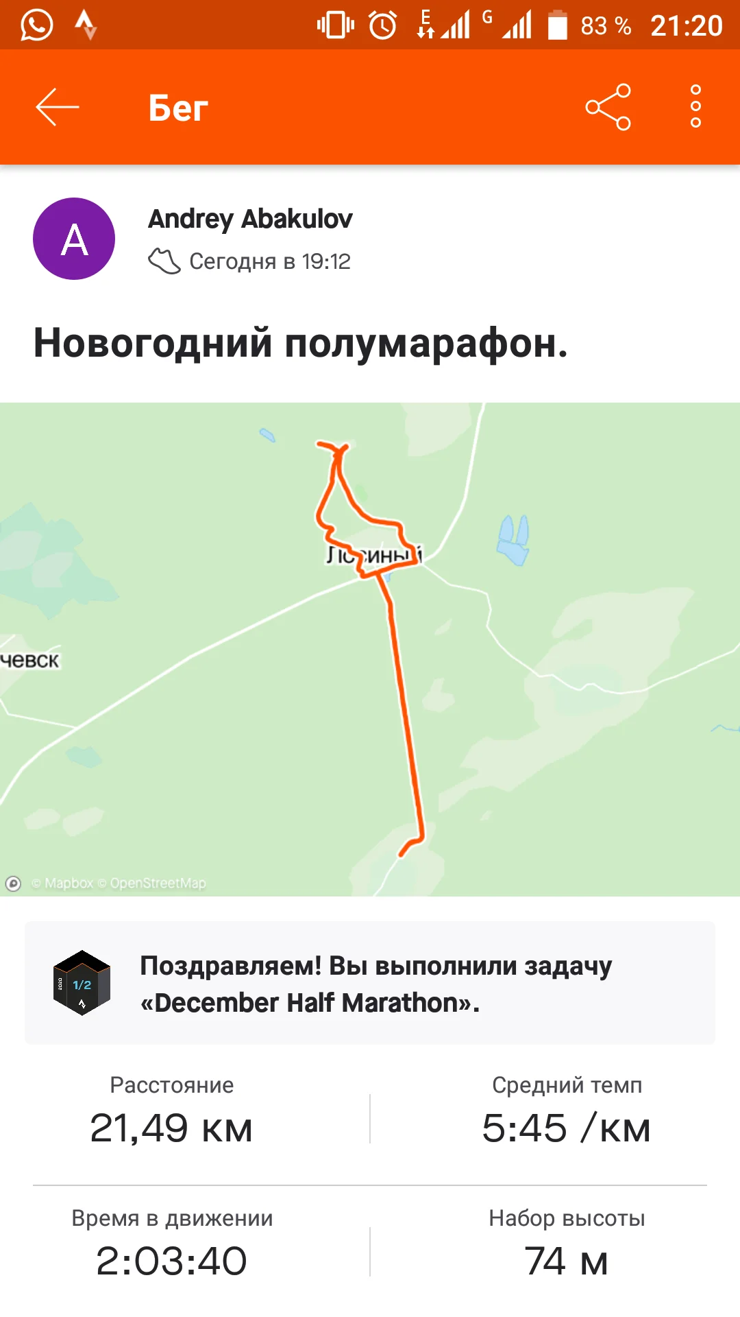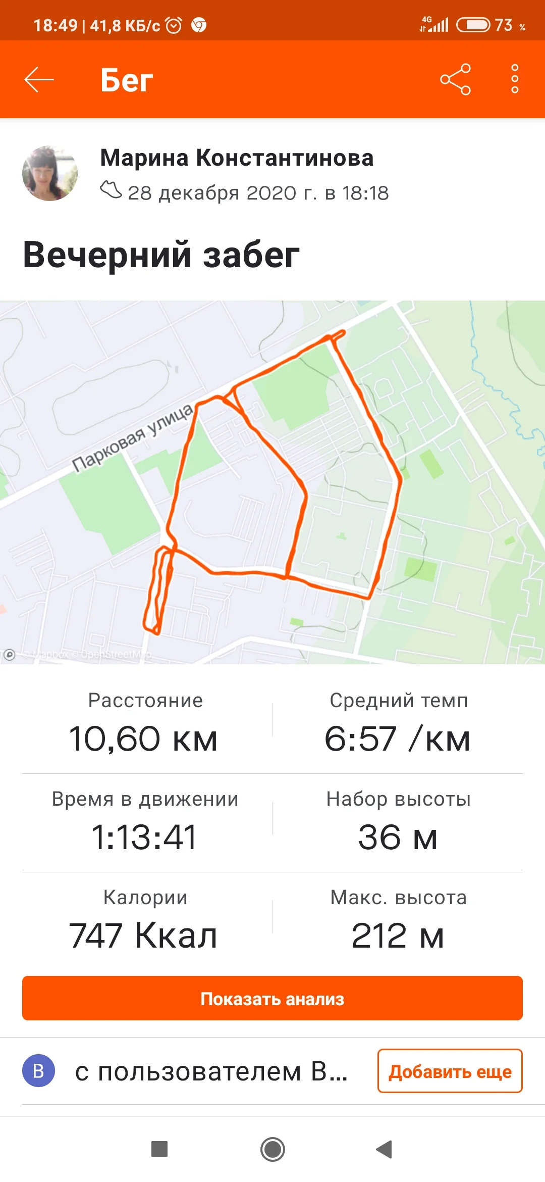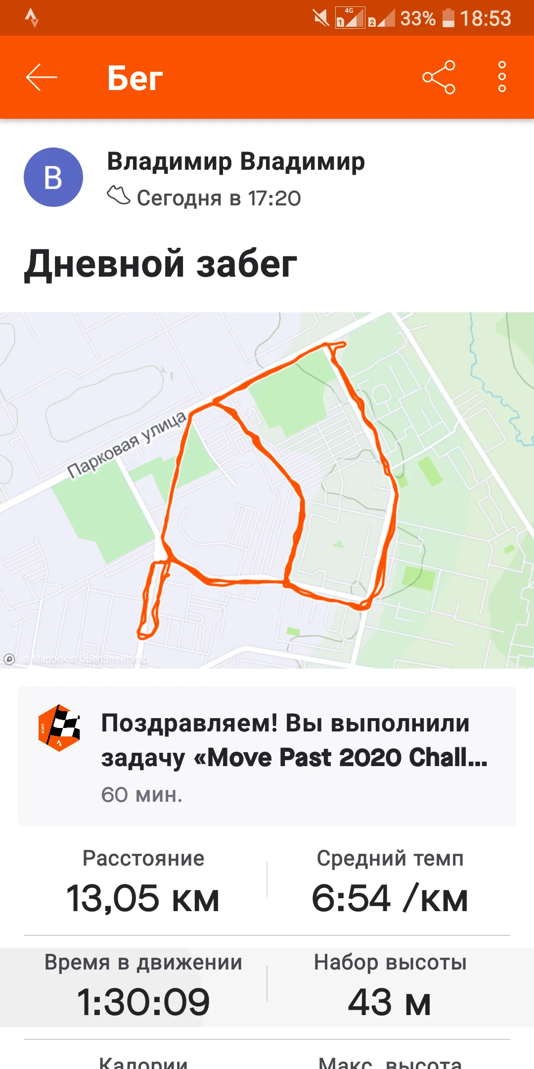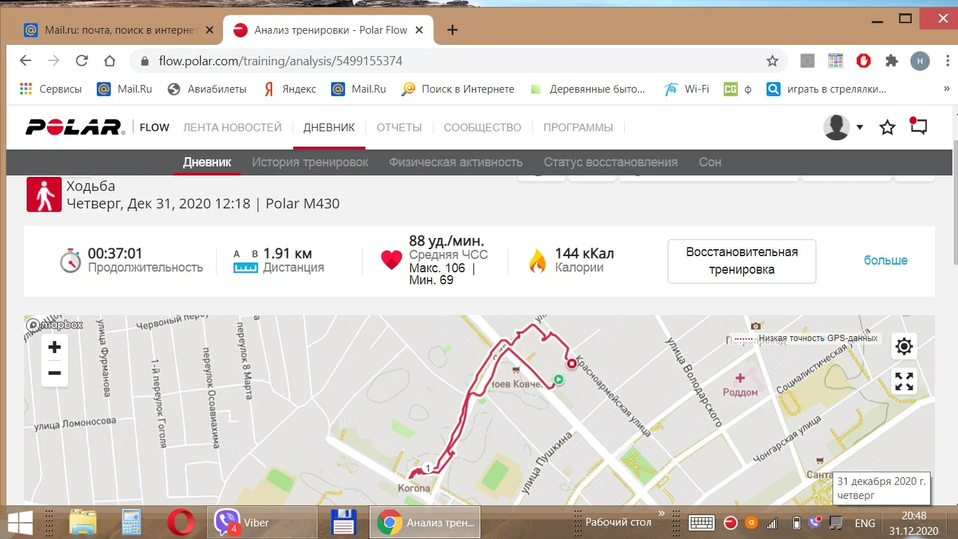 Отчёт за 01.01.2021. Бег - 6.70
