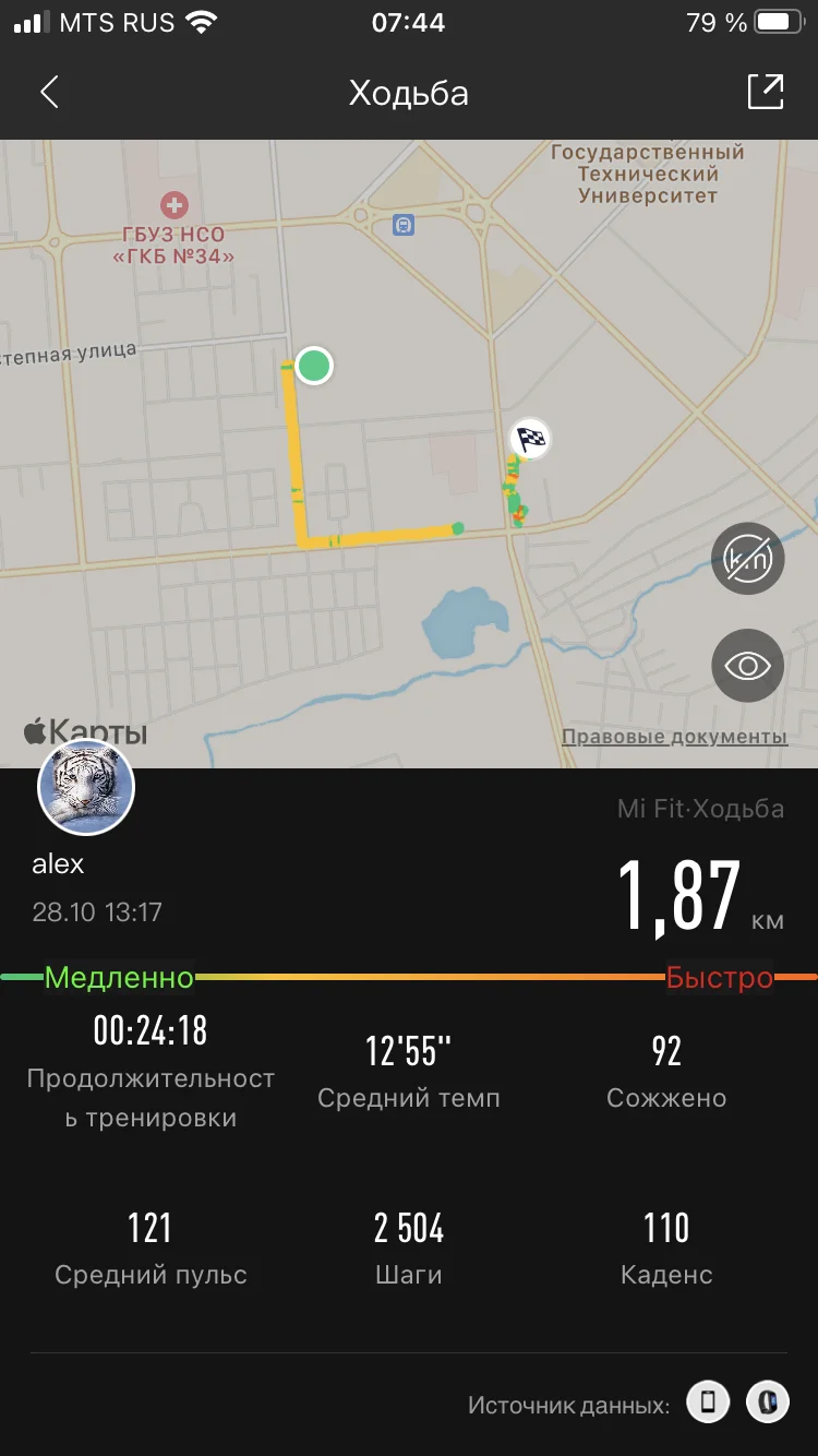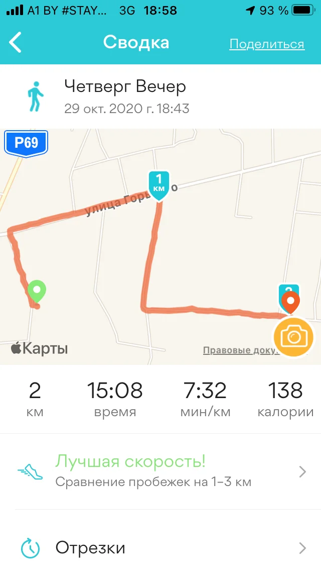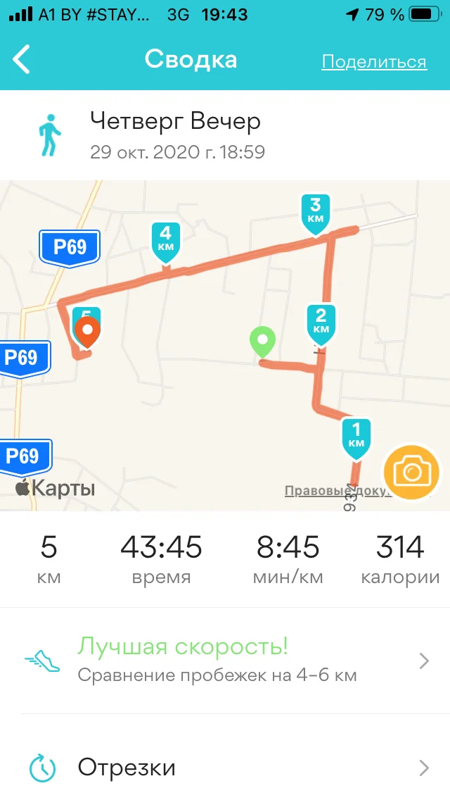 29.10 бежал 2 км, ходил 5 км - итого 7 км движения)
