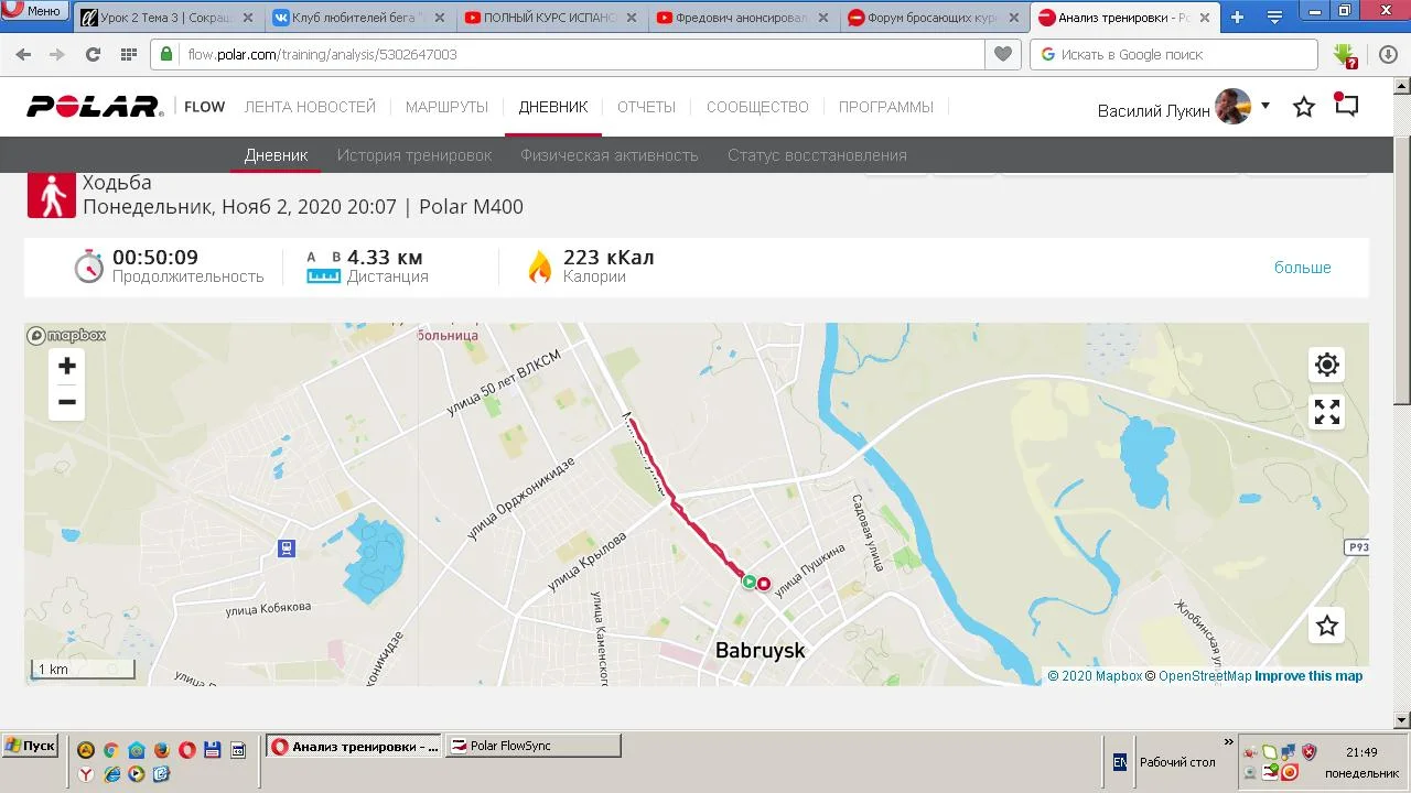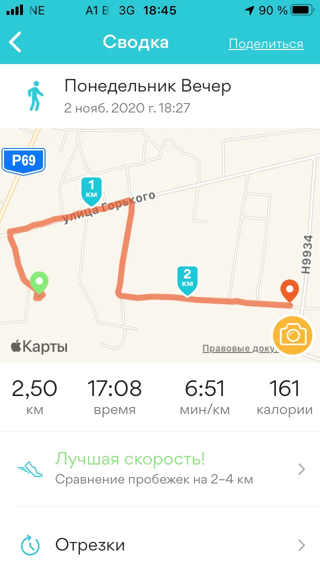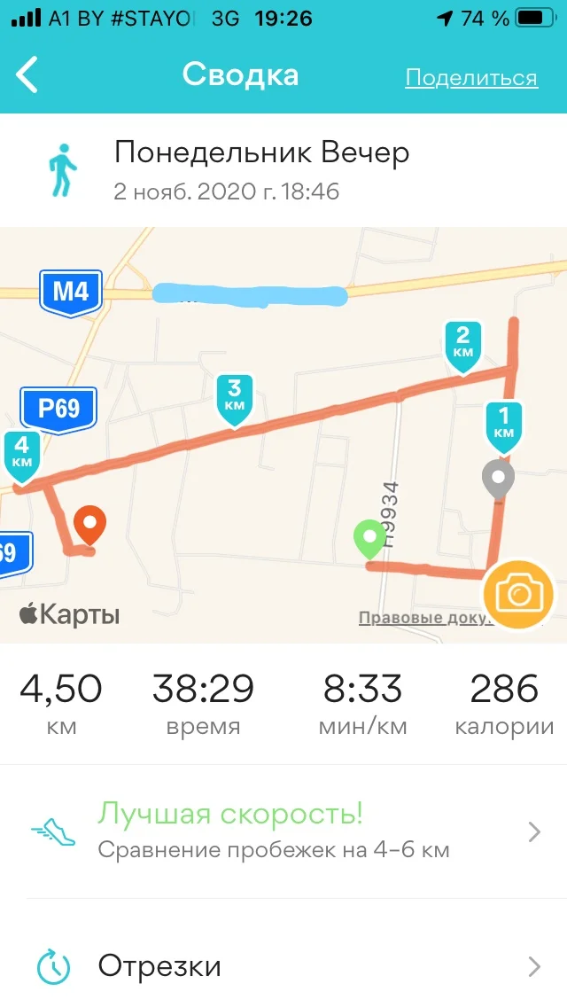 27.10.20. Ходьба 2,29 и 2,91 км. Всего 5,20 км.