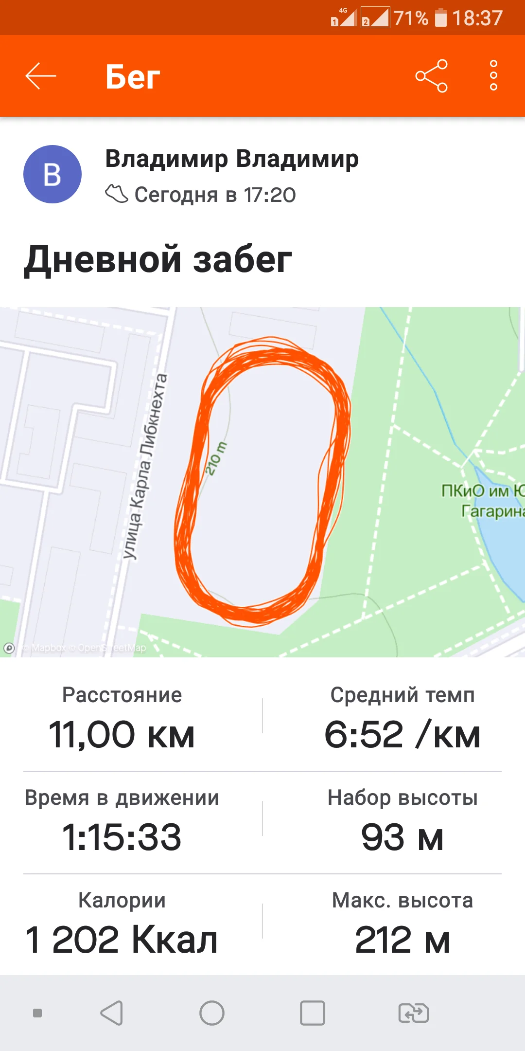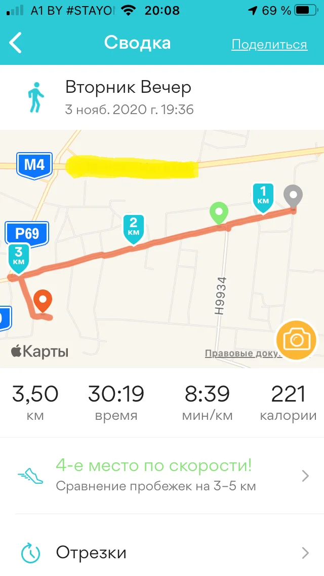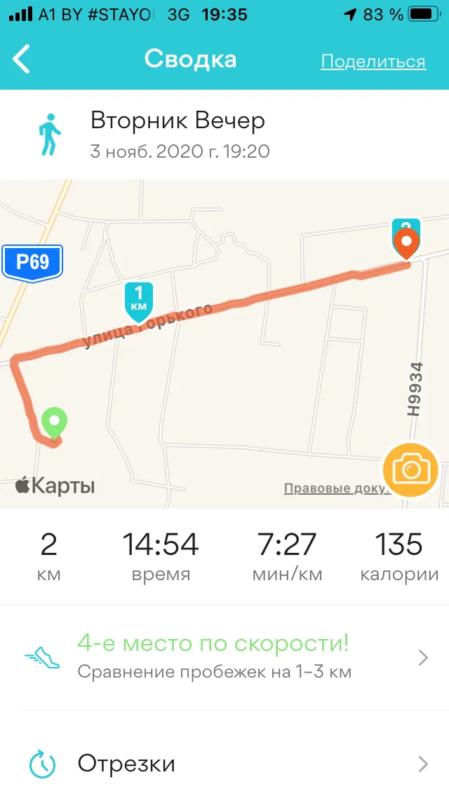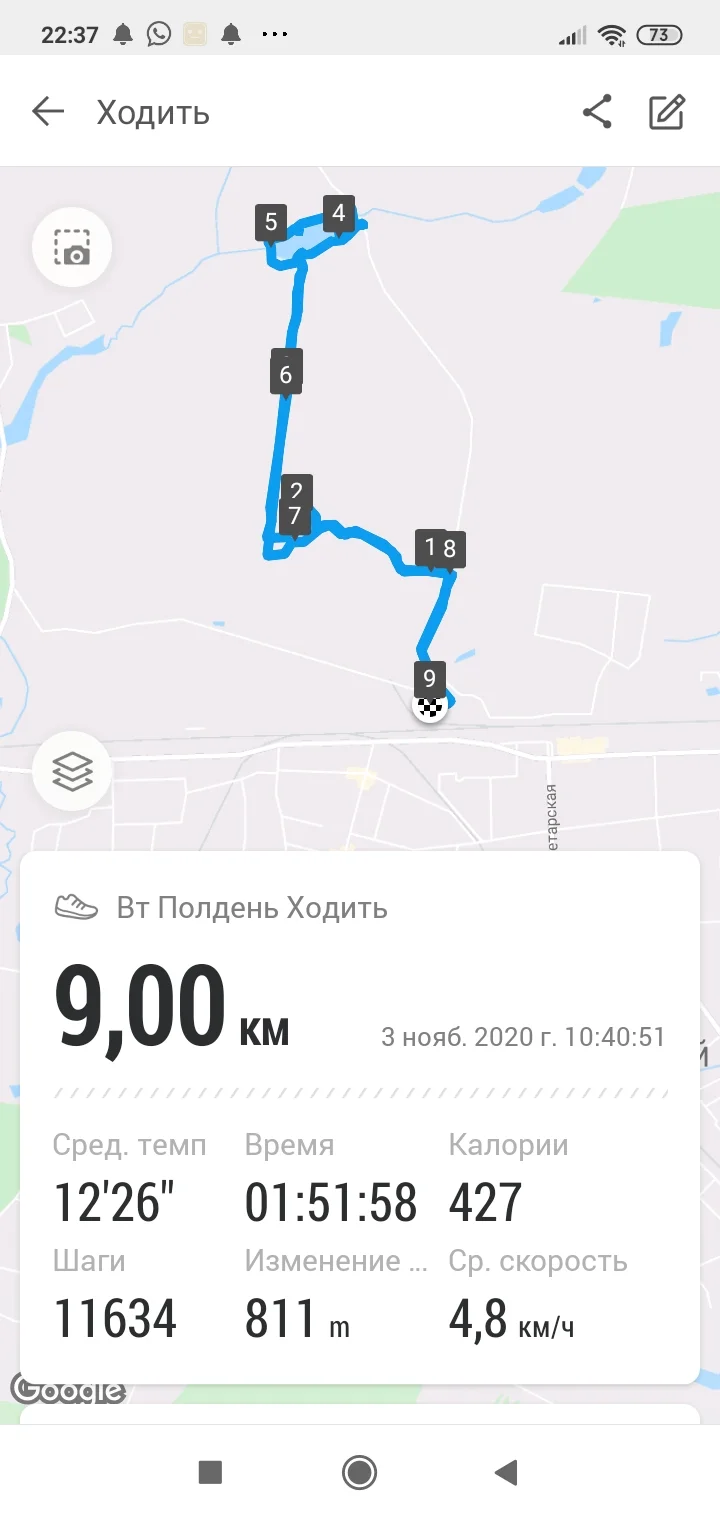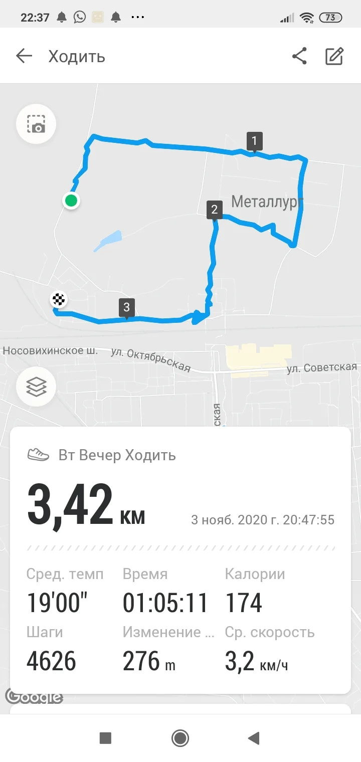Всем доброго вечера) 03.11 доожждь... но двигался, правда без восторга... бежал - 2км, ходил - 3,5 км всего -5,5км Хорошего настроения всем!!