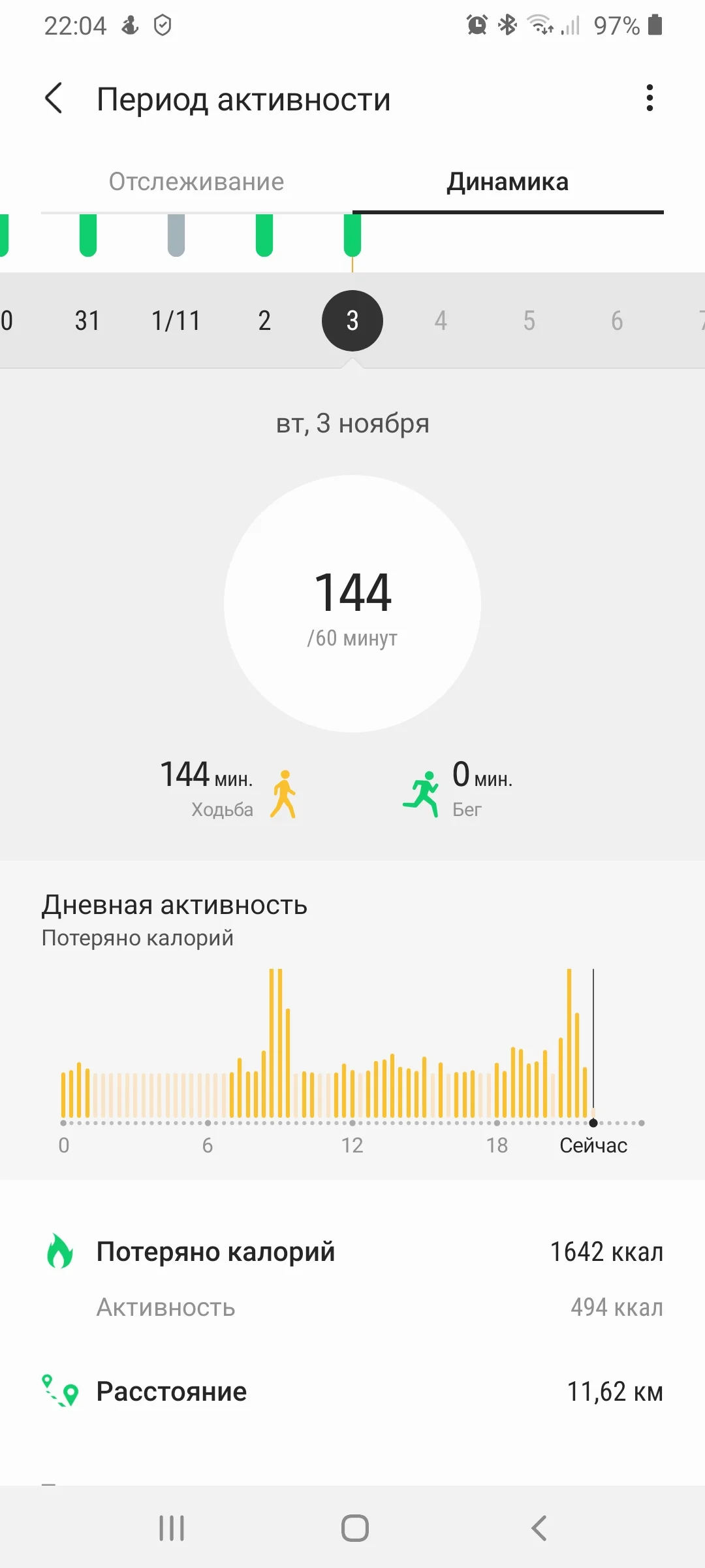 Alex2020 Оракул Сообщения 3.804 Реакции 9.373 Дневник Читать »» Не курю с 08.03.2020 Метод Сила Воли Лет курения 27 3 Ноя 2020 #1.902 Добрый вечер!) Отчет за 03.11. Ходьба, бег 6,96км Всем удачи и отличного настроения!)