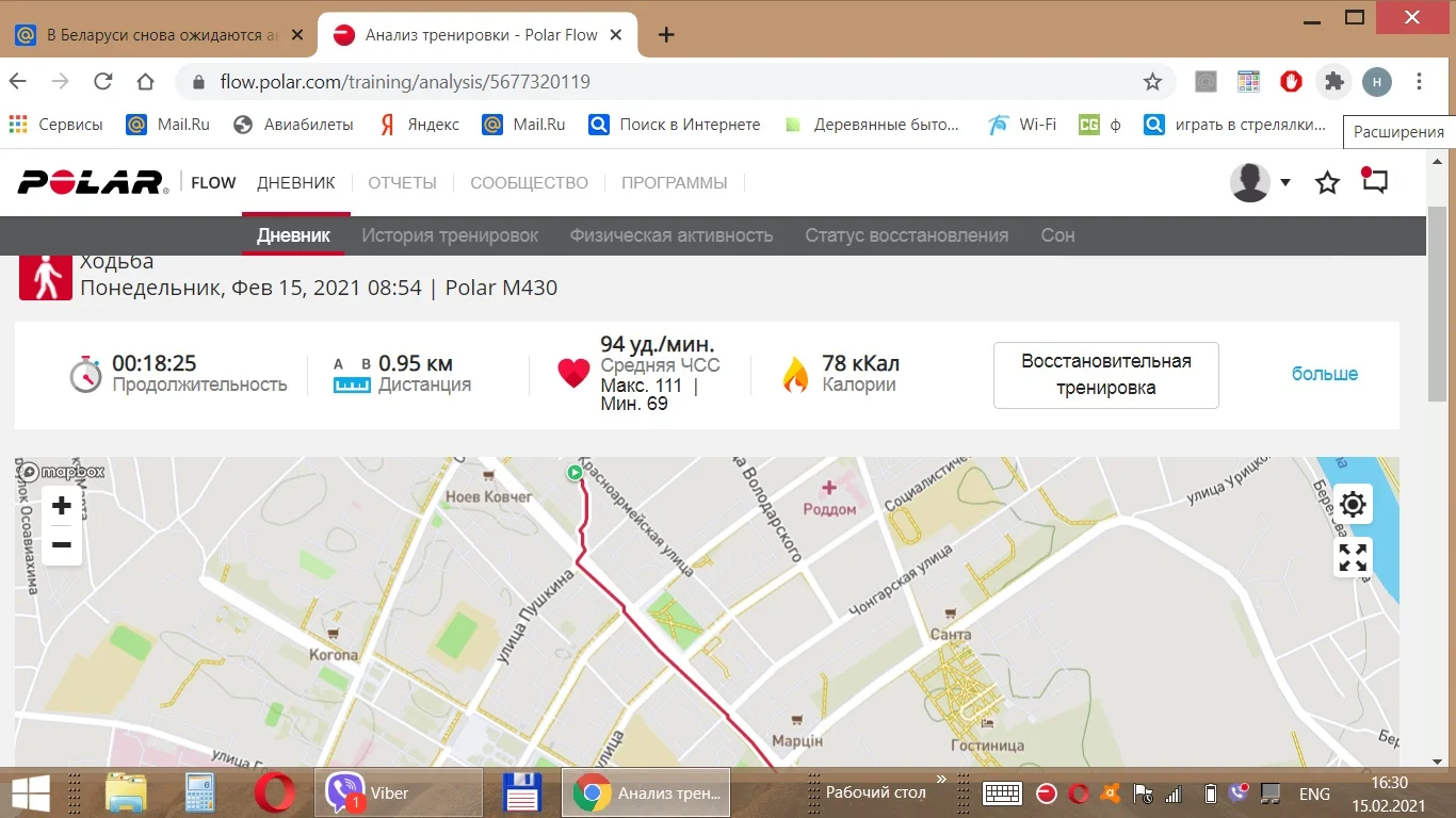 Отчёт за 15 февраля.. Ходьба 13.8 км..