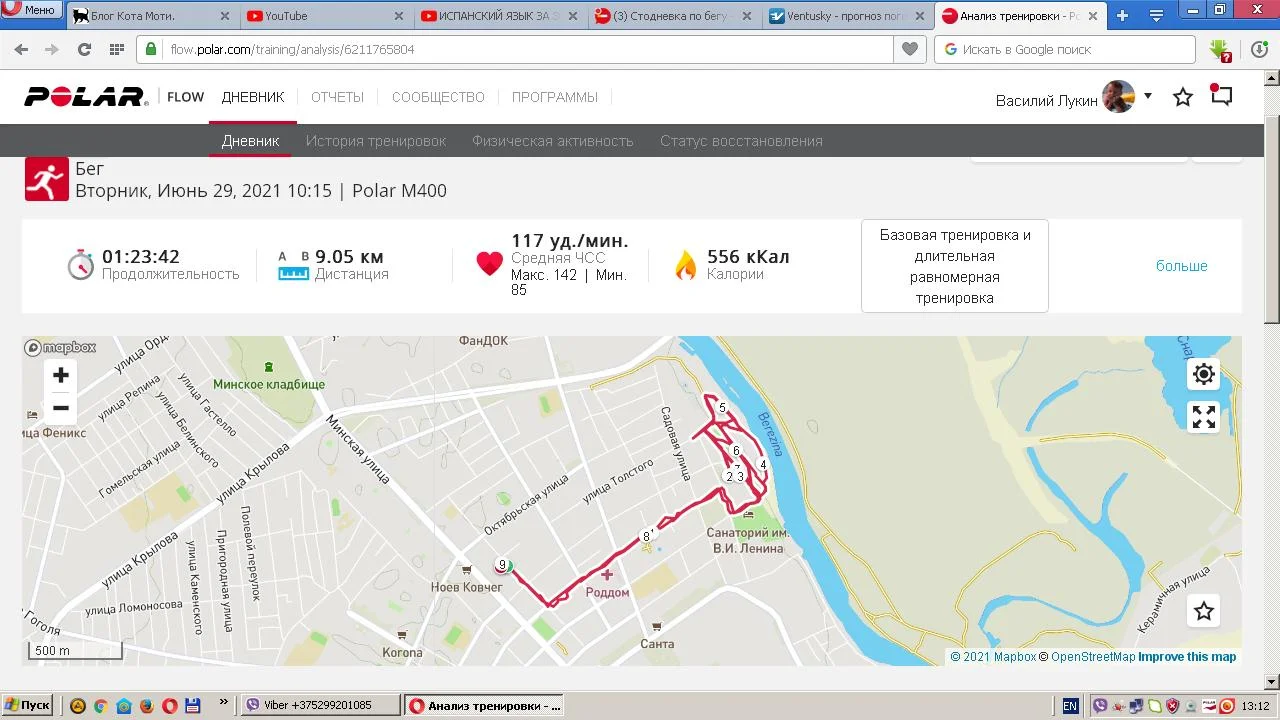 27.06.21. Бег 19,22 км.