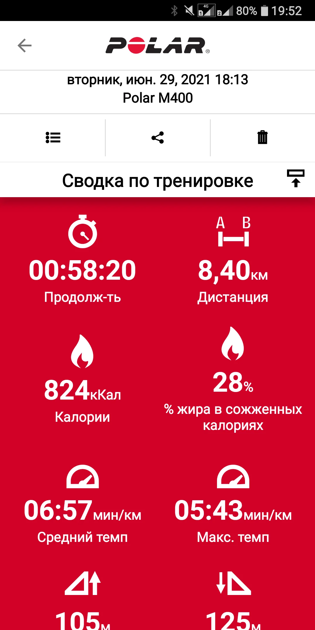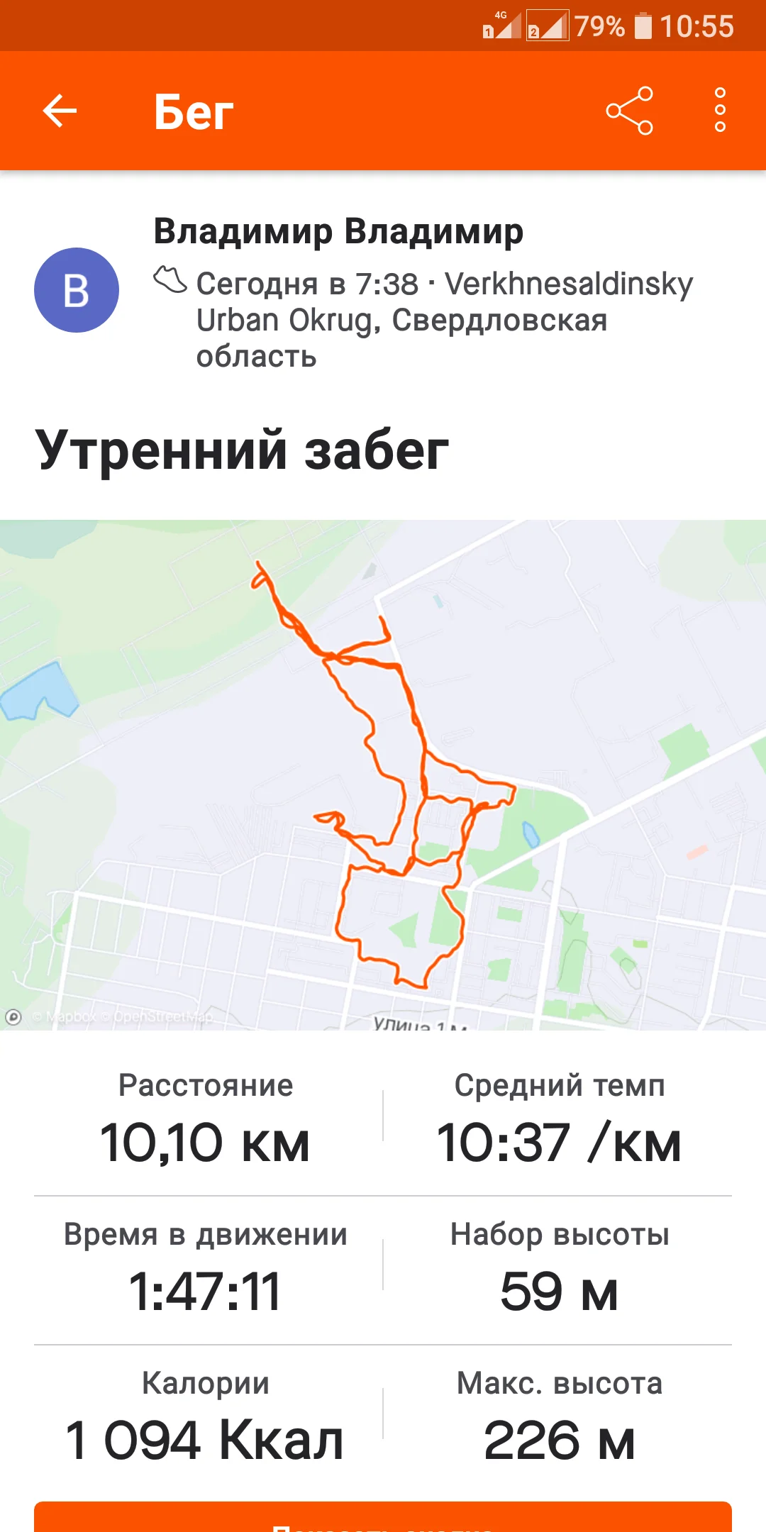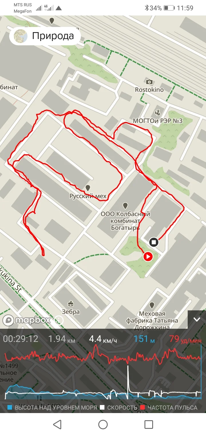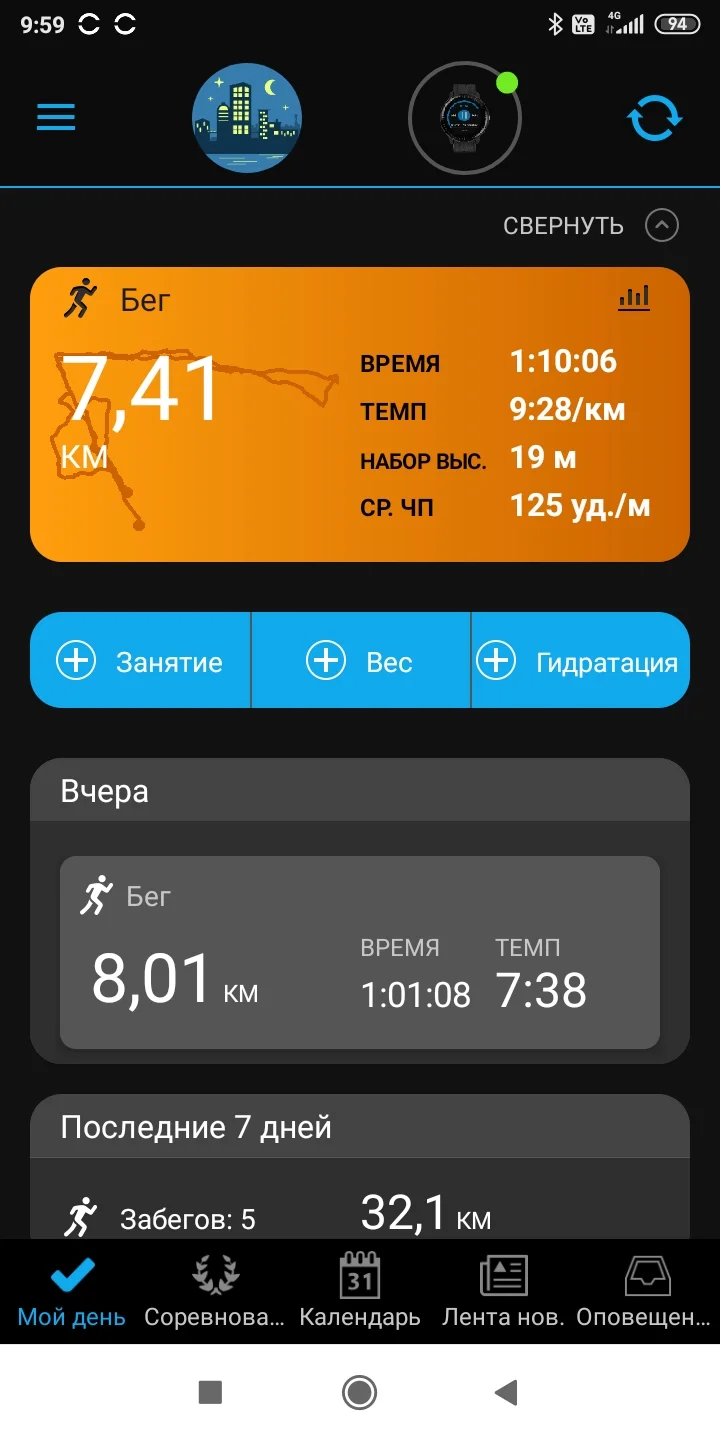 22.06.21. Бег 5,05 и ходьба 1,94 км. Всего 6,99 км.