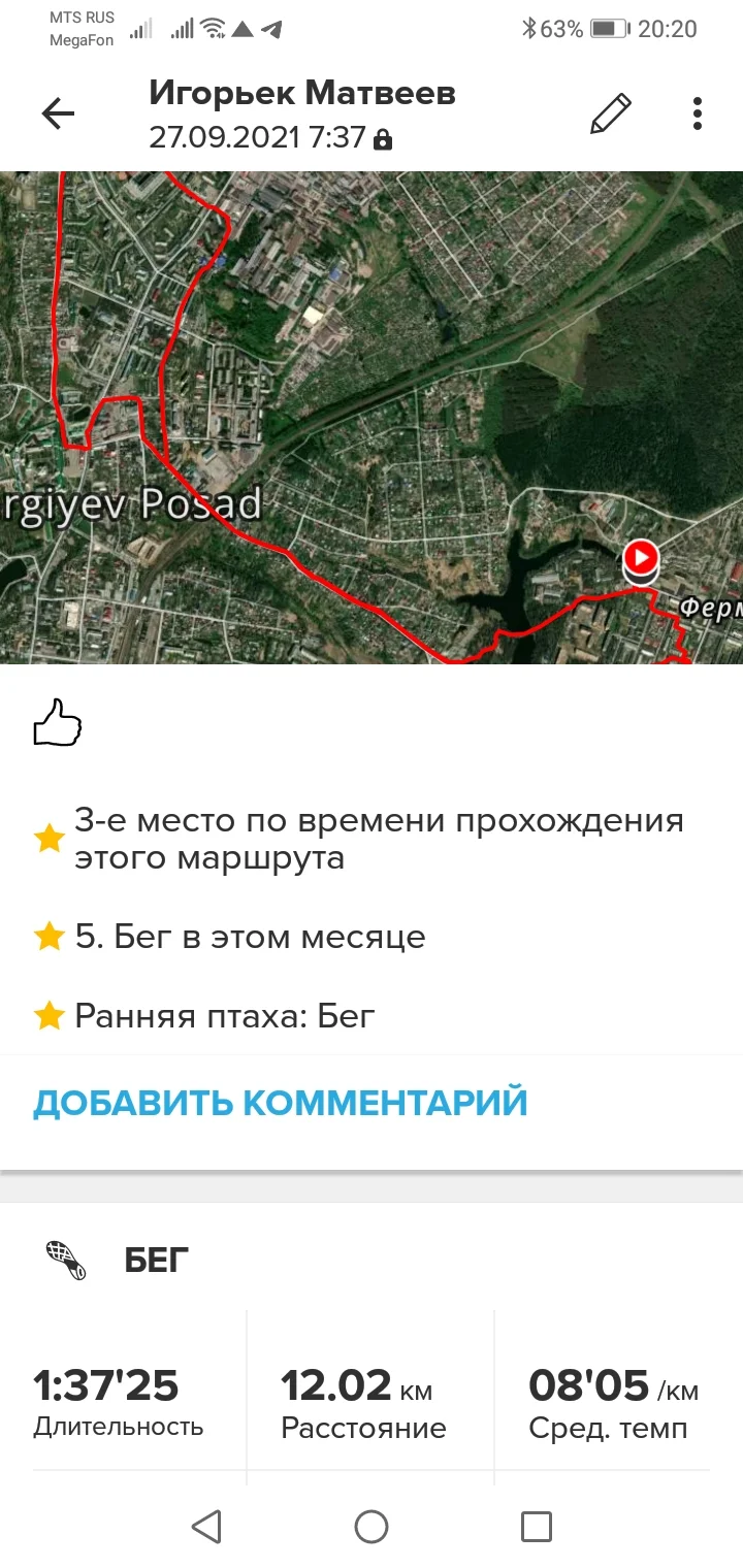 27.09.21. Бег 12,02 км и ходьба 6,0 км. Всего 18,02 км