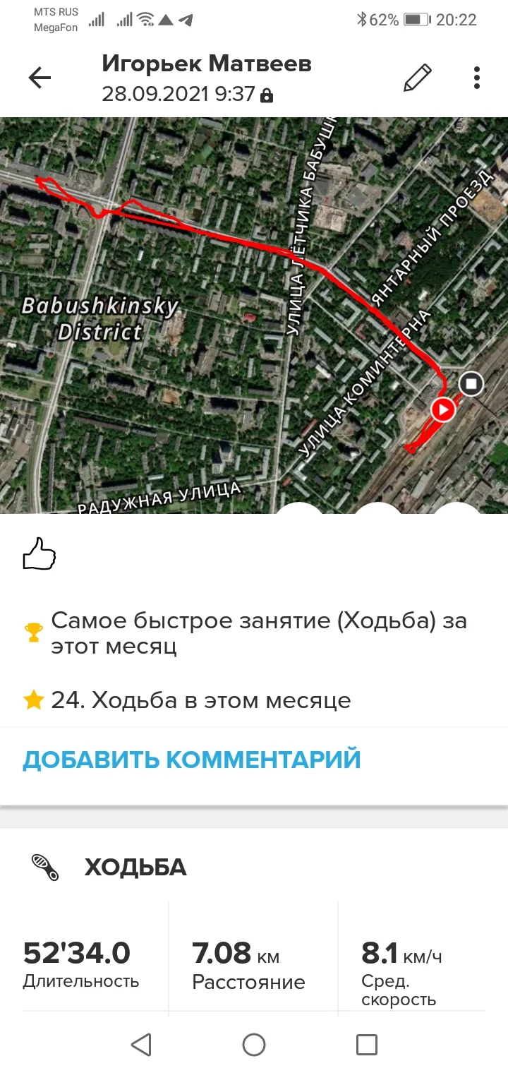 28.09.21. Ходьба 7,08 км.