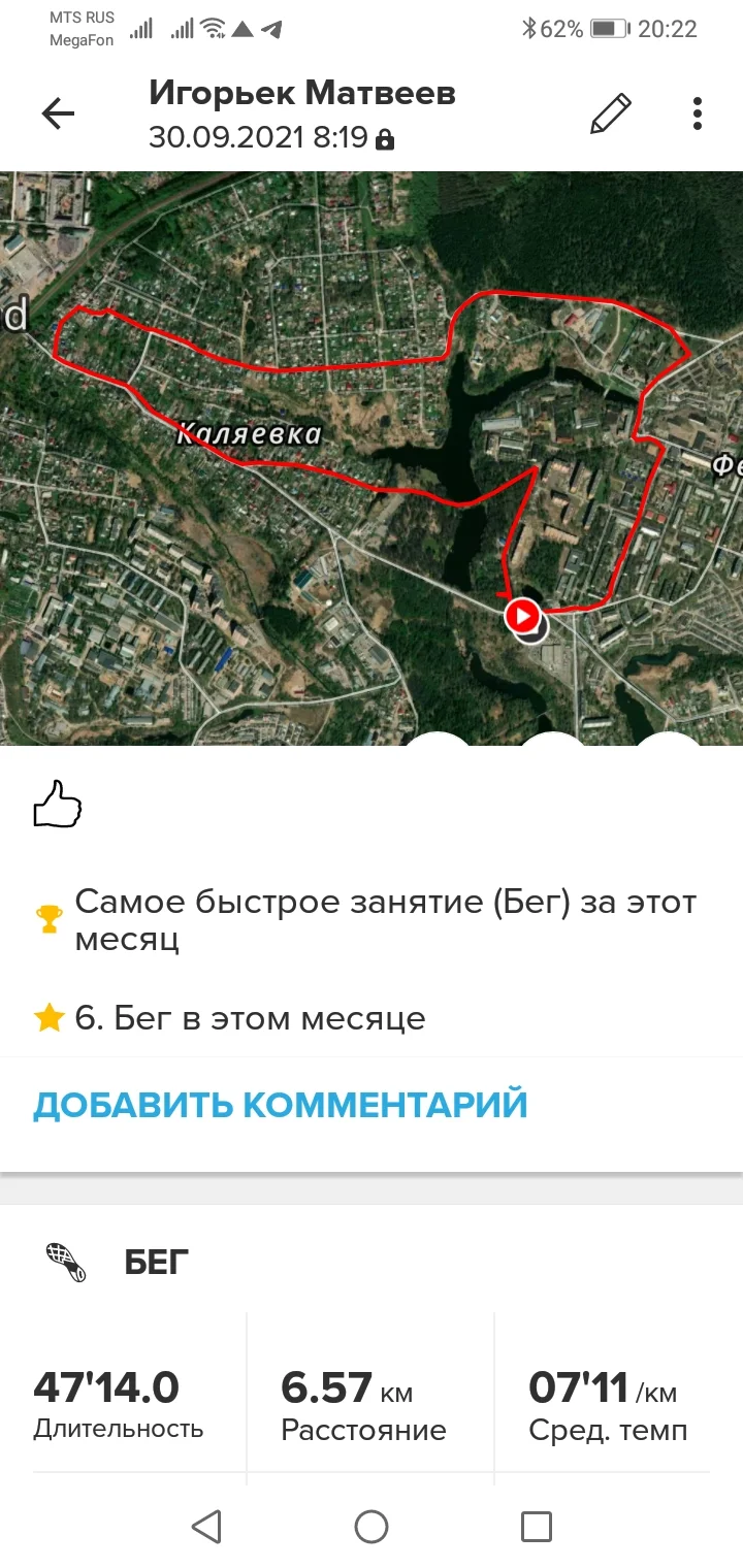 30.09.21. Бег 6,57 км.