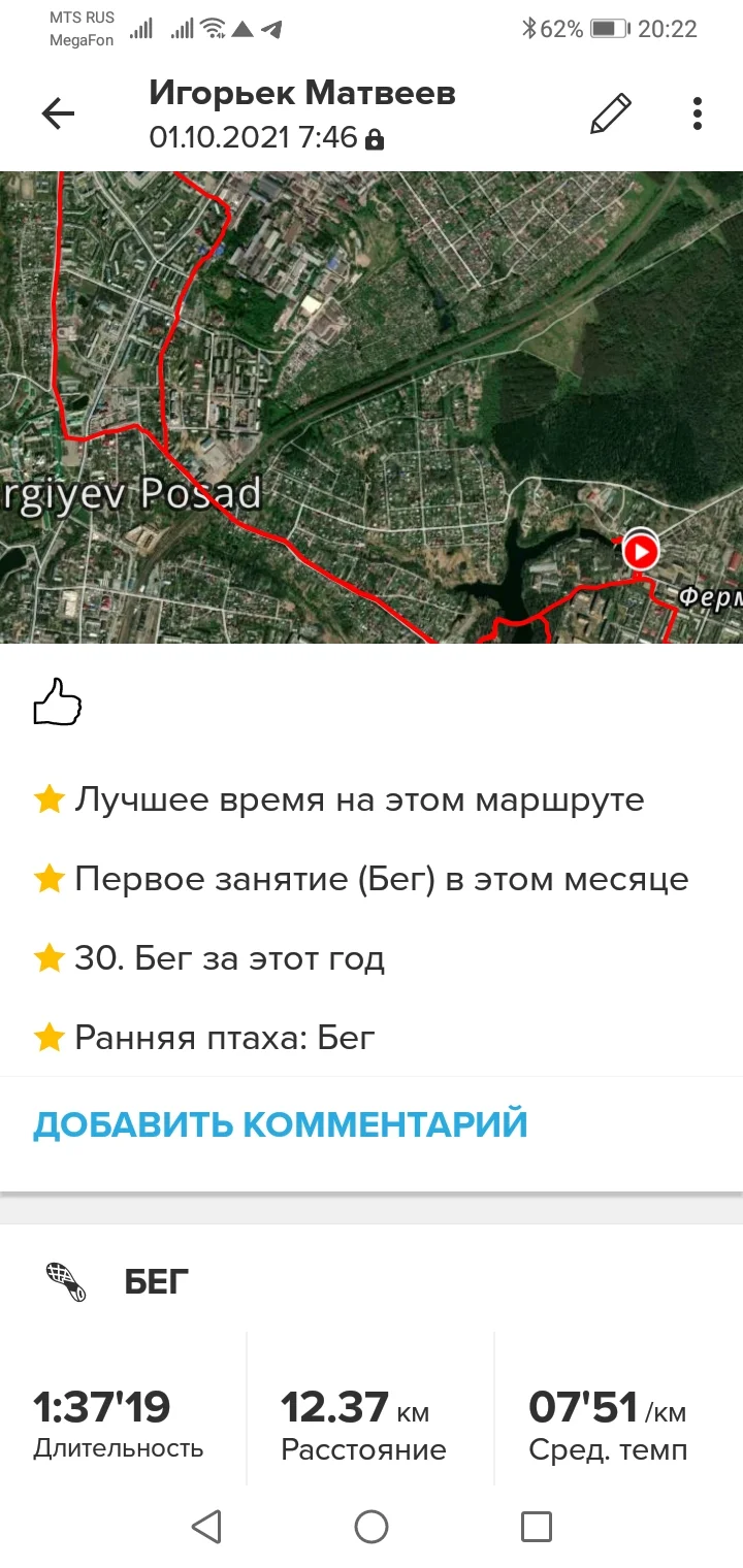 01.10.21. Бег 12,37 км.