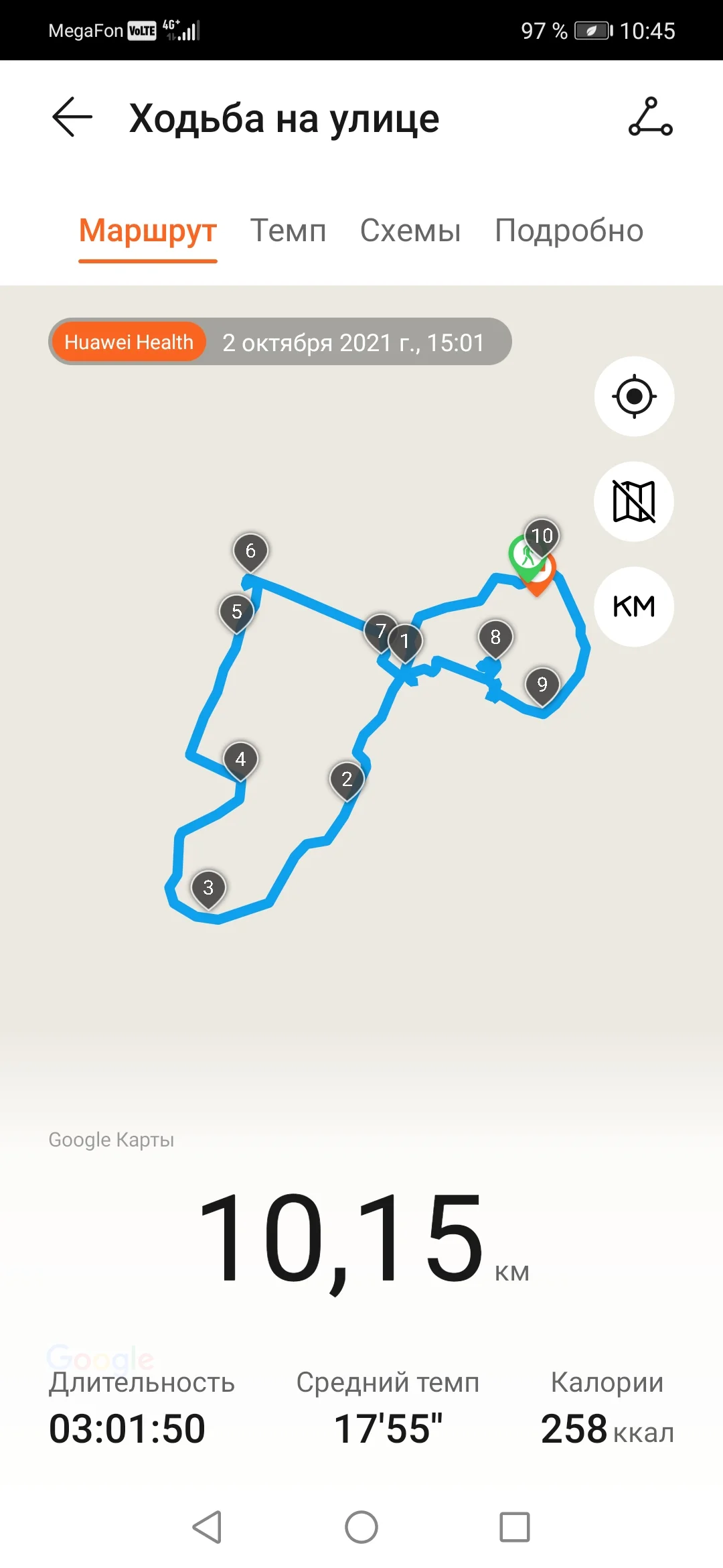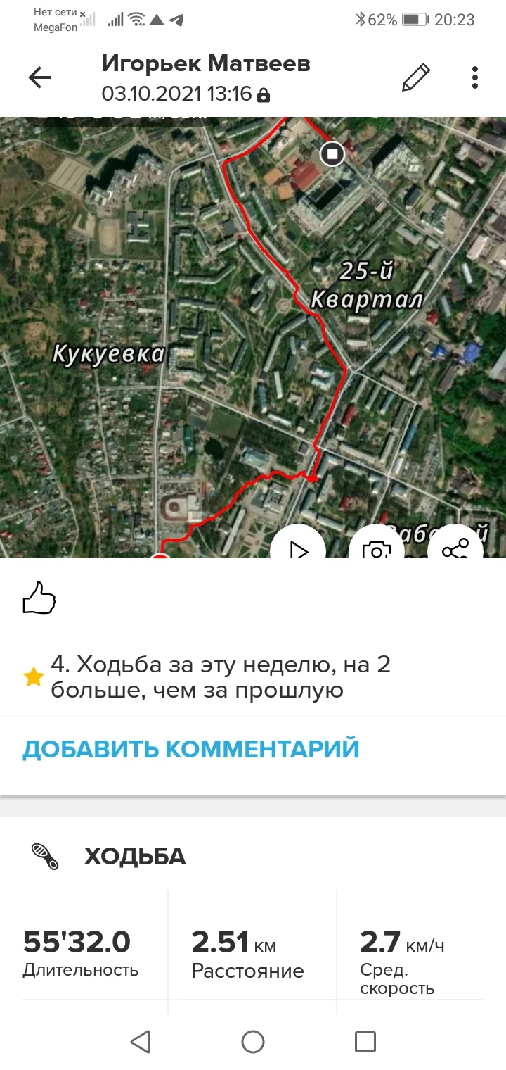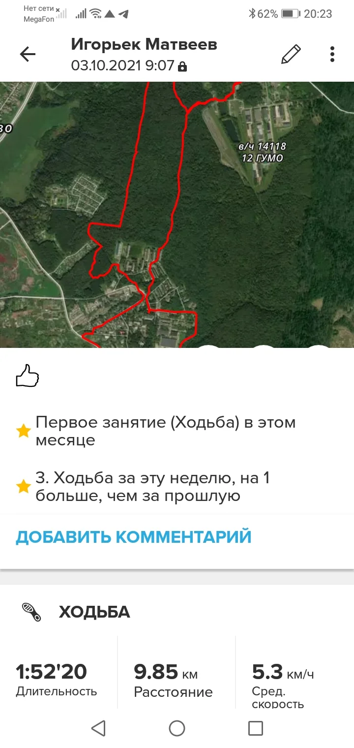 03.10.21. Ходьба 9,85 км и 2,51 км. Всего 12,36 км.