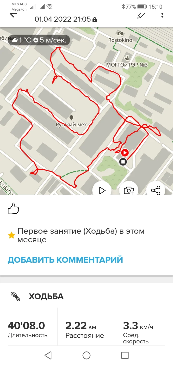 01.04.22. Ходьба 2,22 км.