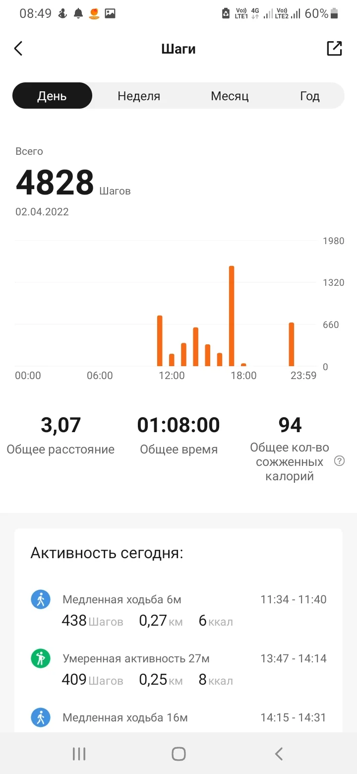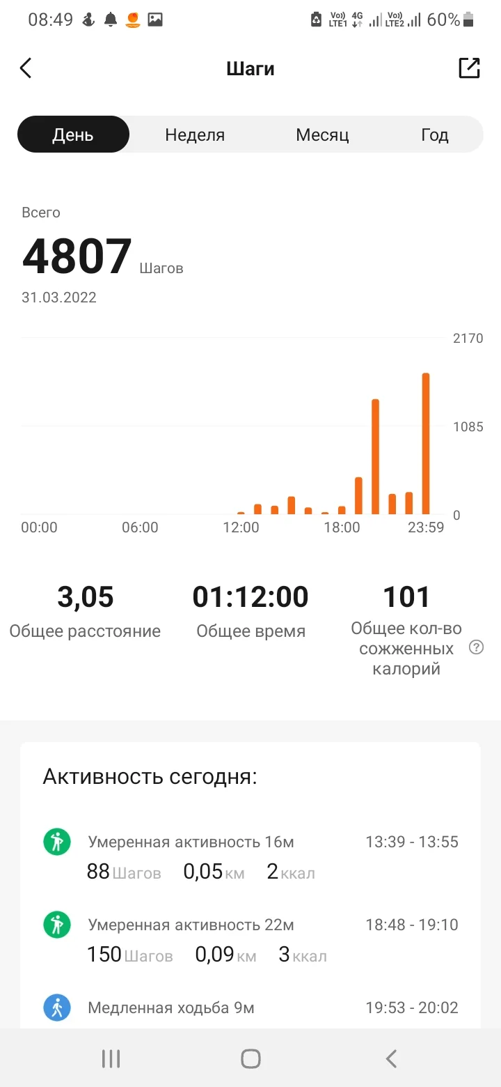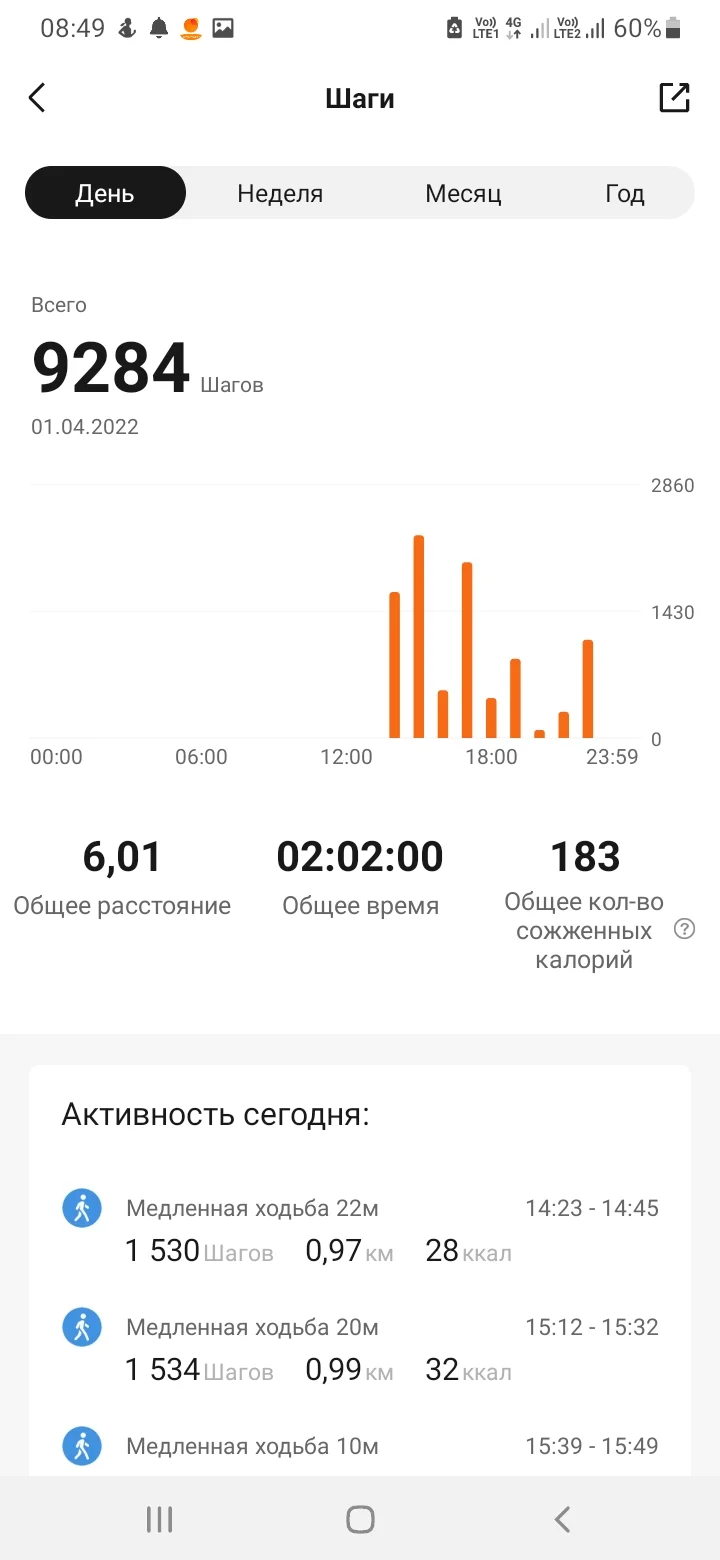 Галла Пророк Сообщения 4.798 Реакции 20.754 6 Апр 2022 #1.368 Отчет 04.04 Ходьба-5,34 6,04 Ходьба-3,71