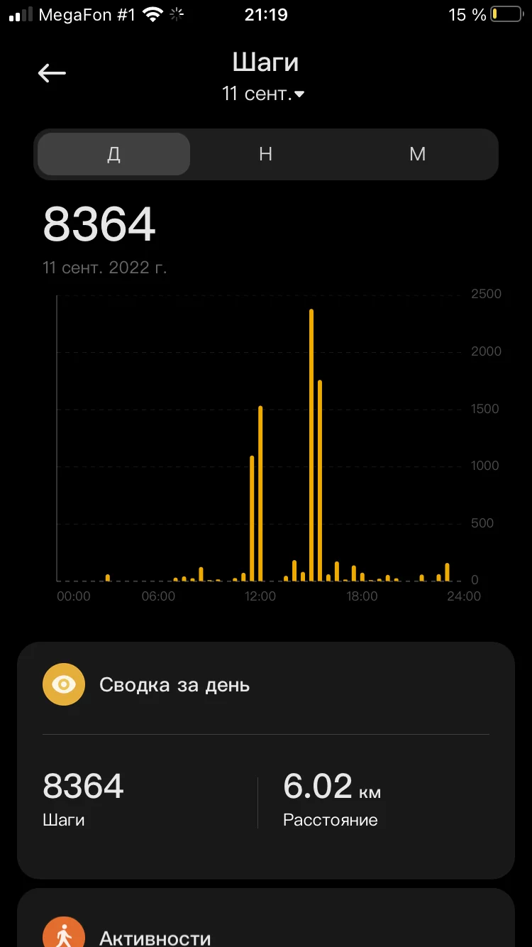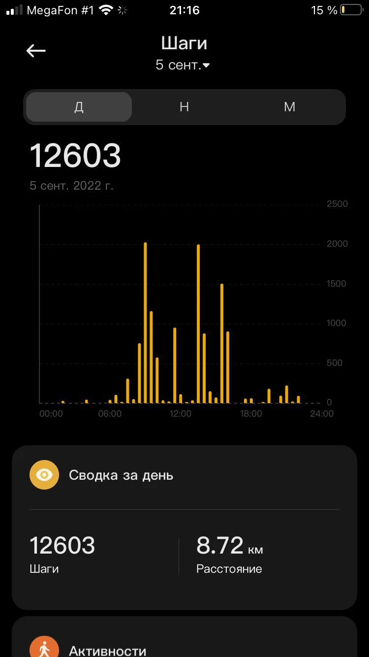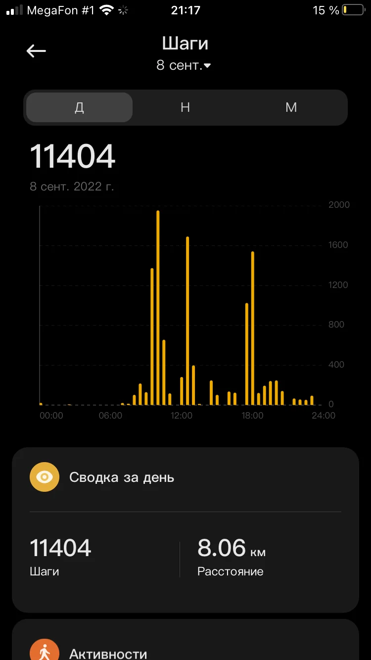 Привет! Отчет. 05.09.2022 Ходьба 8,72 06.09.2022 Ходьба 6,16 07.09.2022 Ходьба 6,70 08.09.2022 Ходьба 8,06 09.09.2022 Ходьба 5,31 10.09.2022 Ходьба 3,74 11.09.2022 Ходьба 6,02