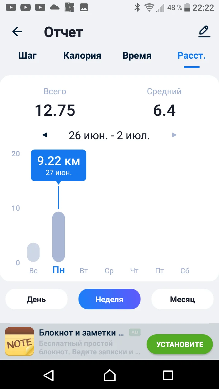 Отчитаюсь за прошлую неделю 27.06-03.06 ходьба, бег