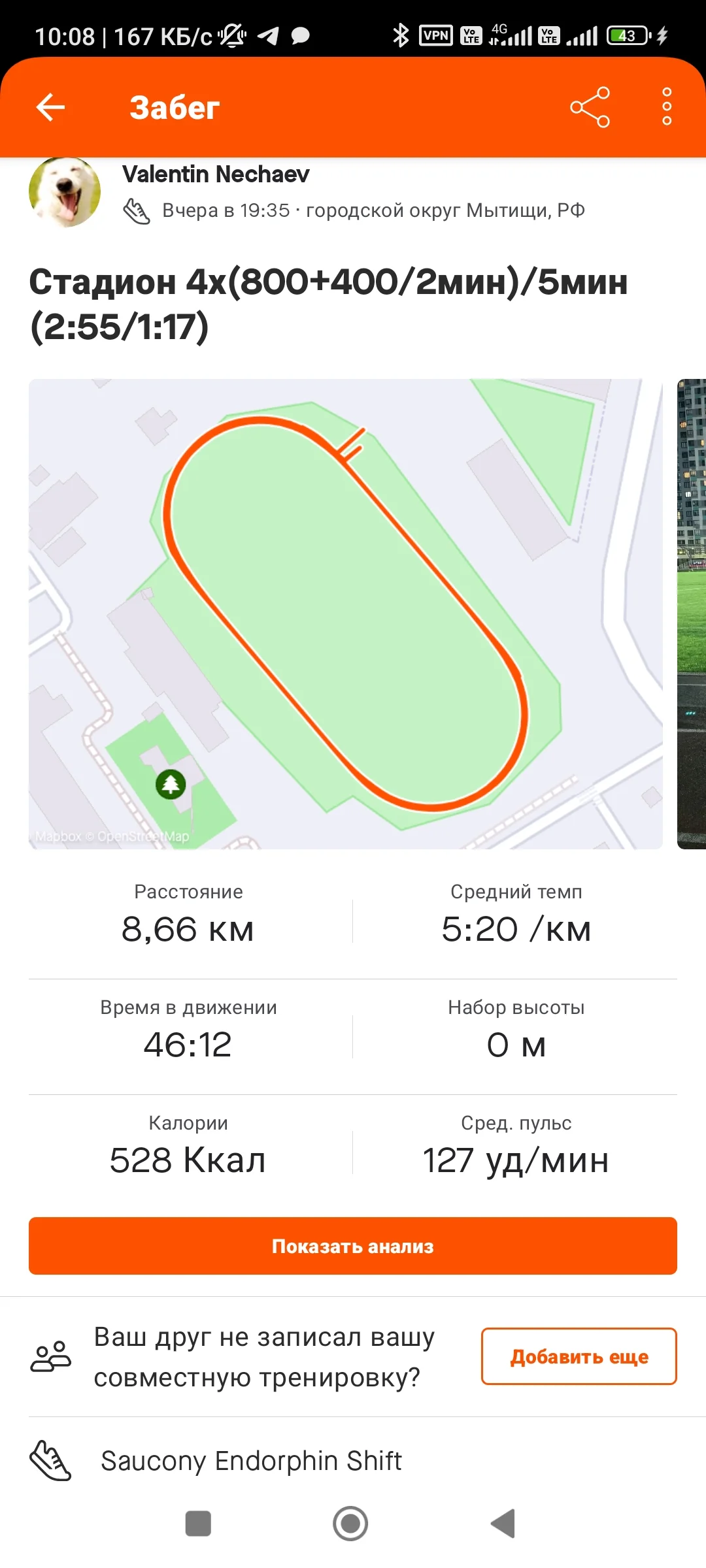 The Wall Капитан АрктикА V.I.P Сообщения 10.487 Реакции 47.923 Дневник Читать »» Не курю с 24.11.2015 Метод Метод генералов КГБ! Лет курения 14 16 Авг 2023 #601 Отчёт за 15.08. Бег 8,66 км. Вложения Screenshot_2023-08-16-10-08-52-898_com.strava.webp 106,4 KB · Просмотры: 21 IMG_20230815_210753_334.webp 282,4 KB · Просмотры: 20
