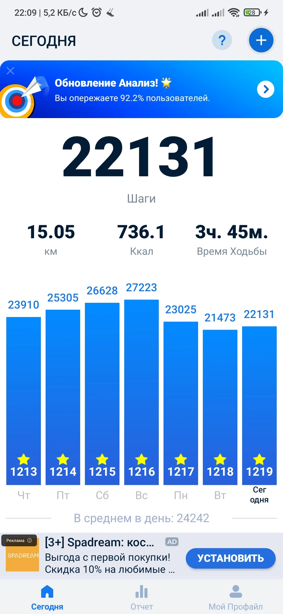 окташкод Ветеран Сообщения 1.880 Реакции 8.659 Дневник Читать »» Не курю с 18.12.2019 Метод Сила Воли Лет курения 22 10 Апр 2024 #1.111 Добрый вечер. Отчёт за неделю Вложения Screenshot_20240410_225332_Samsung Health.webp 78,4 KB · Просмотры: 21 Screenshot_20240410_225236_Samsung Health.webp 153,9 KB · Просмотры: 19 Screenshot_20240410_225250_Samsung Health.webp 148,7 KB · Просмотры: 16
