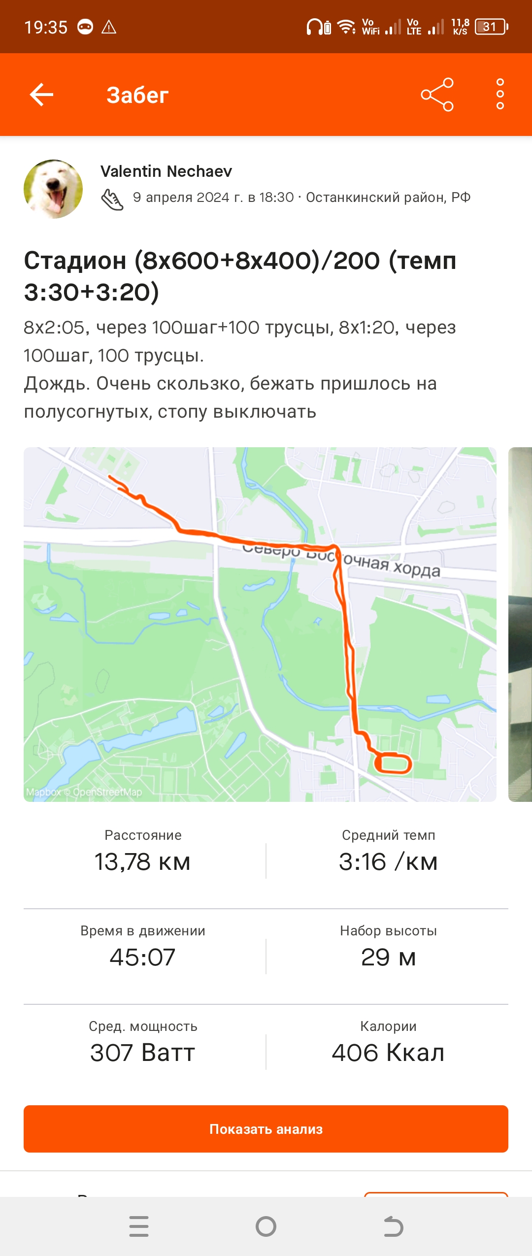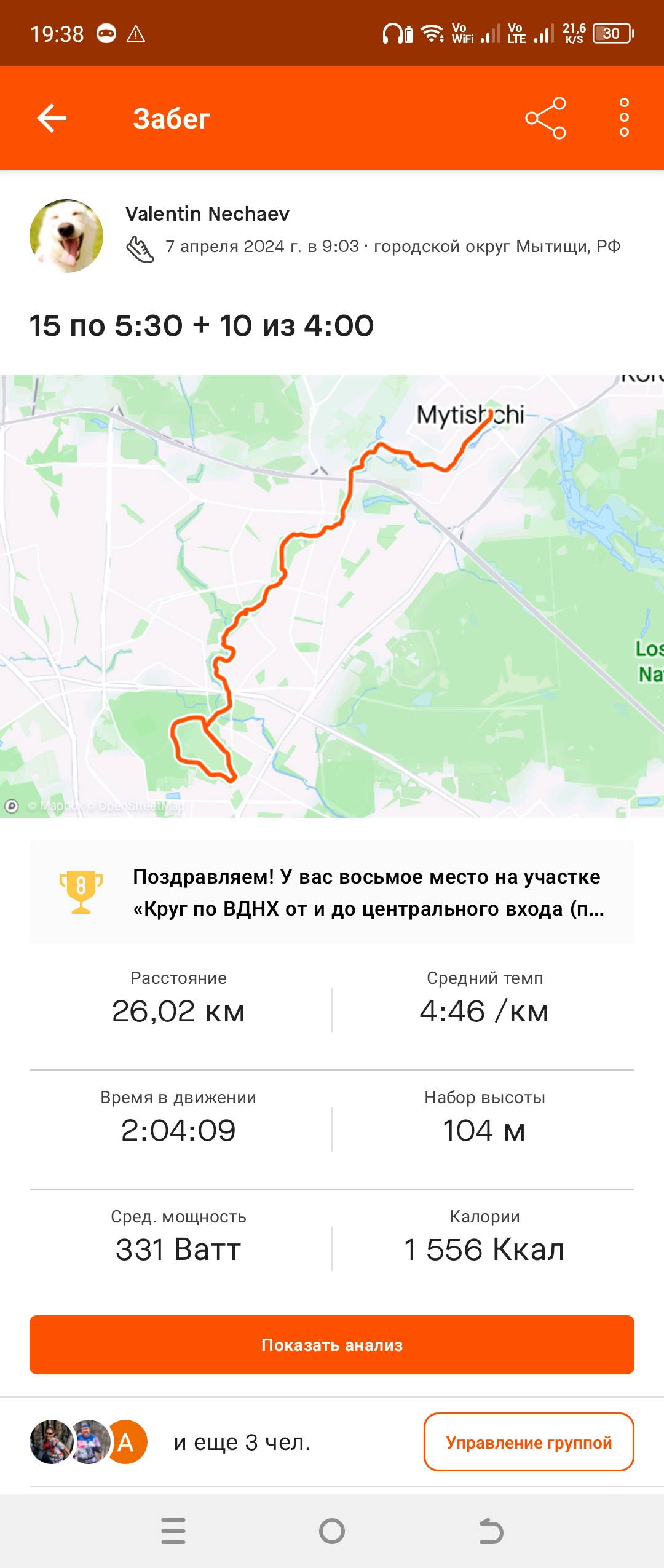 The Wall написал(а): Отчёт за 07.04.24. Бег 26.02 км. Отчёт за 08.04.24. Бег 12.15 км. Отчёт за 09.04.24. Бег 13.78 км. На самом деле часы заглючило. Было 3+11+2 км, всего 16 км в среднем по 5:40. Отчёт за 10.04.24. Бег 12.32+12.35=24.67 км. Отчёт за 12.04.24. Бег 2.41+12.02+2.04=16.47 км. Посмотреть вложение 1990126Посмотреть вложение 1990127Посмотреть вложение 1990128Посмотреть вложение 1990129Посмотреть вложение 1990130Посмотреть вложение 1990131Посмотреть вложение 1990132Посмотреть вложение 1990133 Нажмите для раскрытия... Ты бегаешь там, где я раньше жила! Тебя обожаю, Капитан Валентин. Физкульт привет, бегуны. Как поживаете? А я не бегаю. ? Потому что, я жирненькая коровка. ??