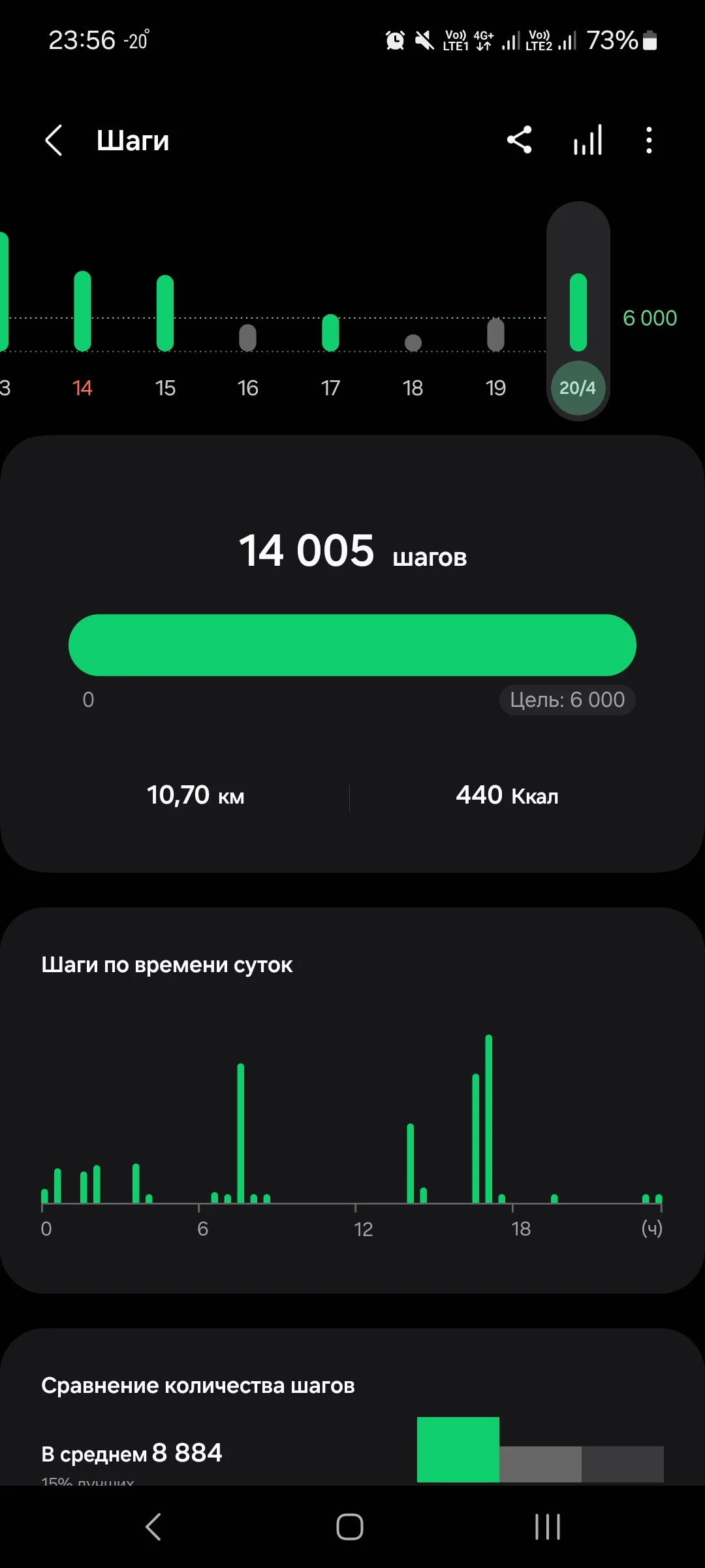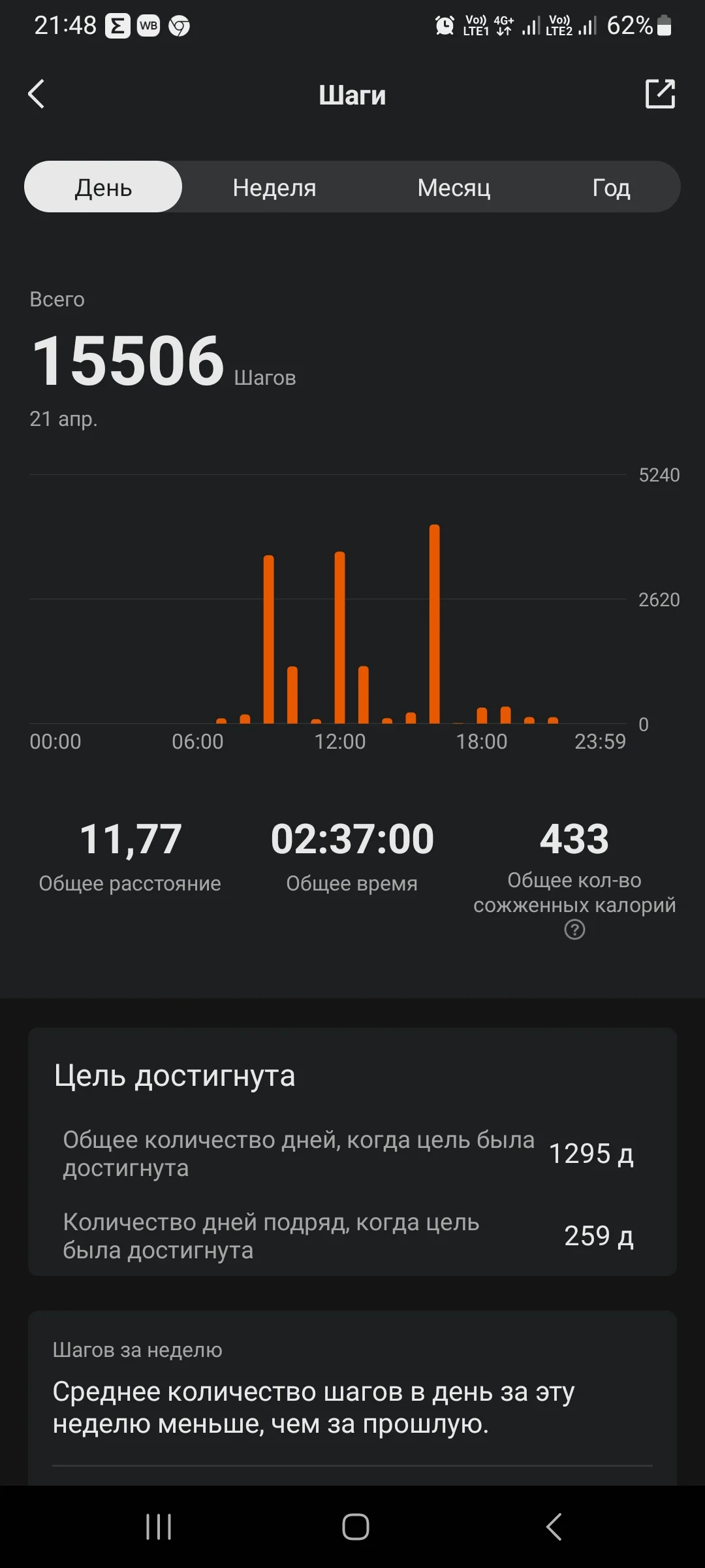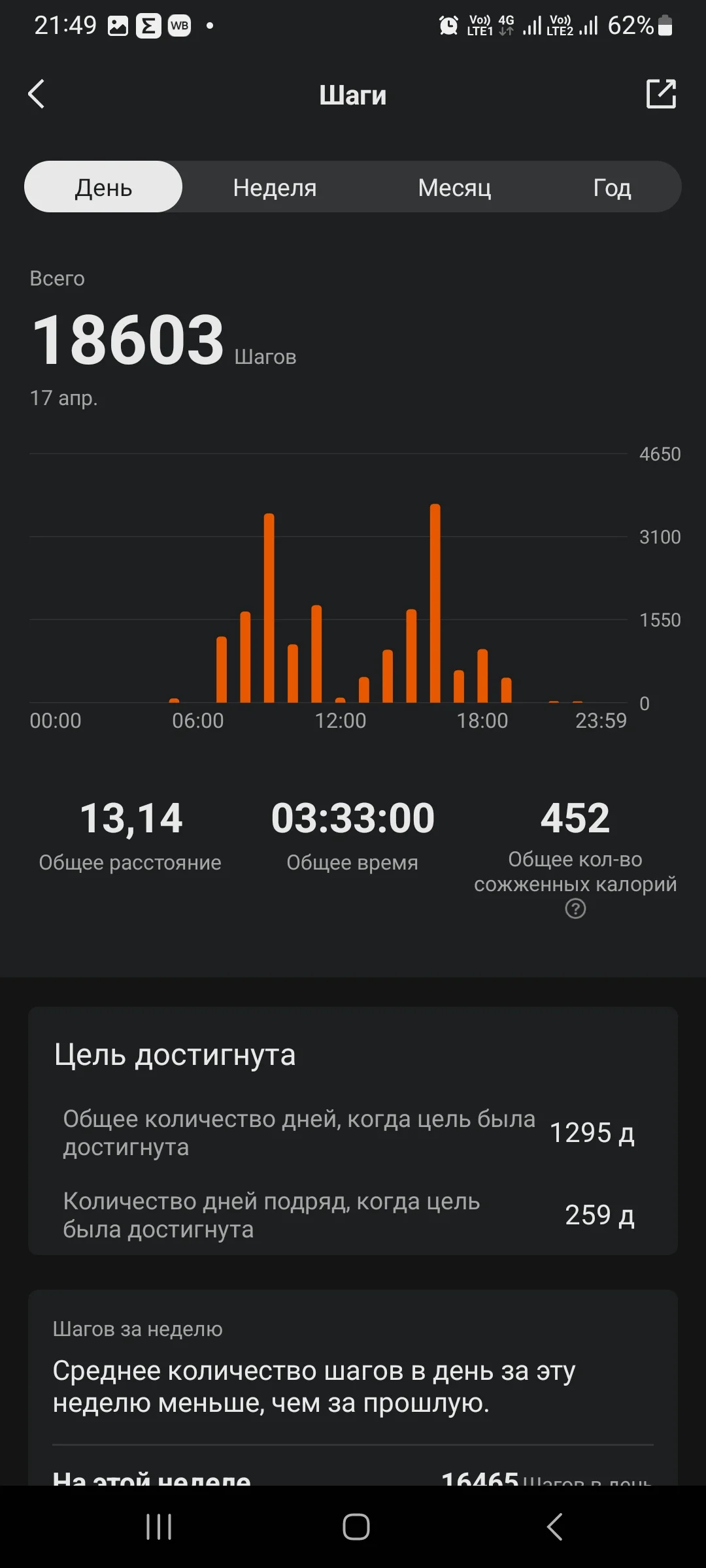 Ёжикツ︎ На форуме с 2016 V.I.P Сообщения 25.608 Реакции 46.842 Дневник Читать »» Не курю с 05.03.2021 Метод Сила Воли Лет курения 9 20 Апр 2024 #1.210 20.04 ходьба 10.7 км. Вложения Screenshot_20240420_235642_Samsung Health.webp 43 KB · Просмотры: 24
