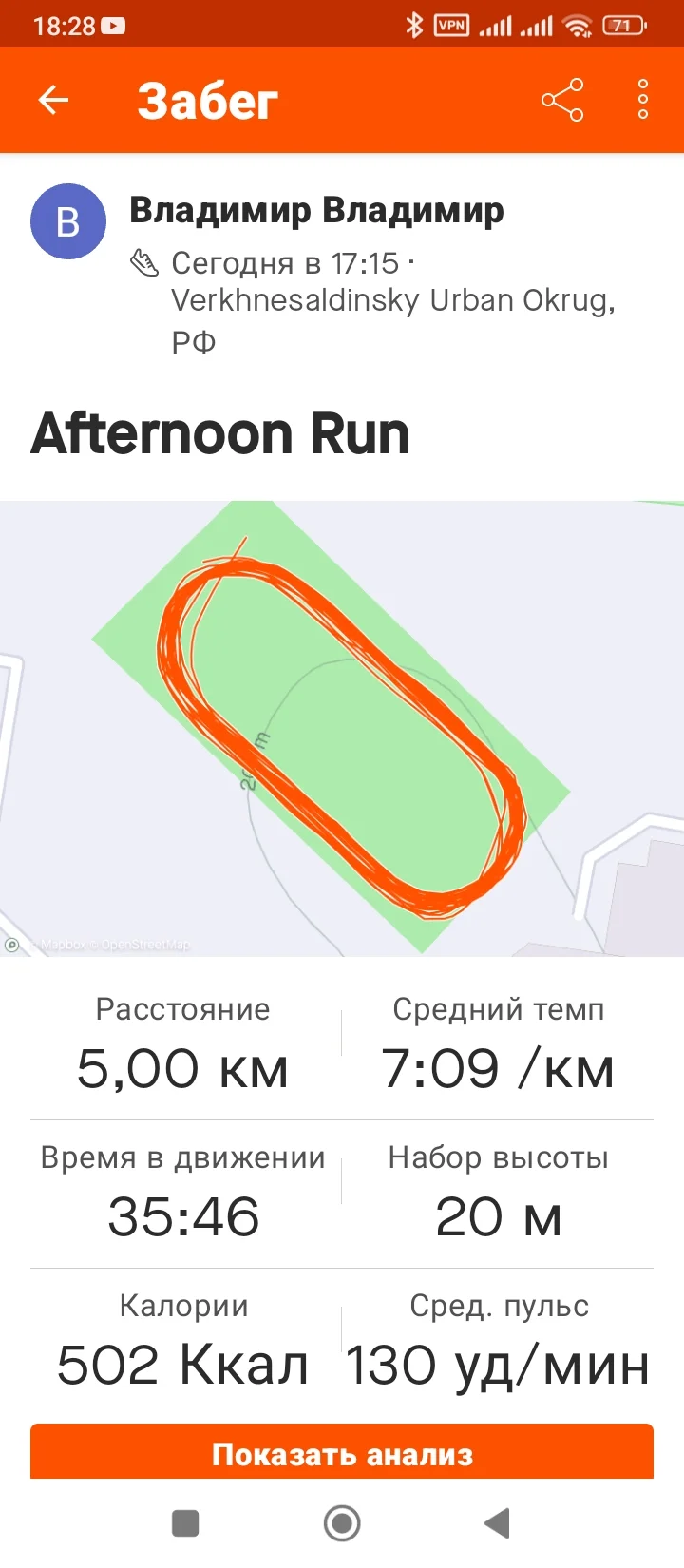 4. Скрин беговой программы Samsung Health или Huawei Health.