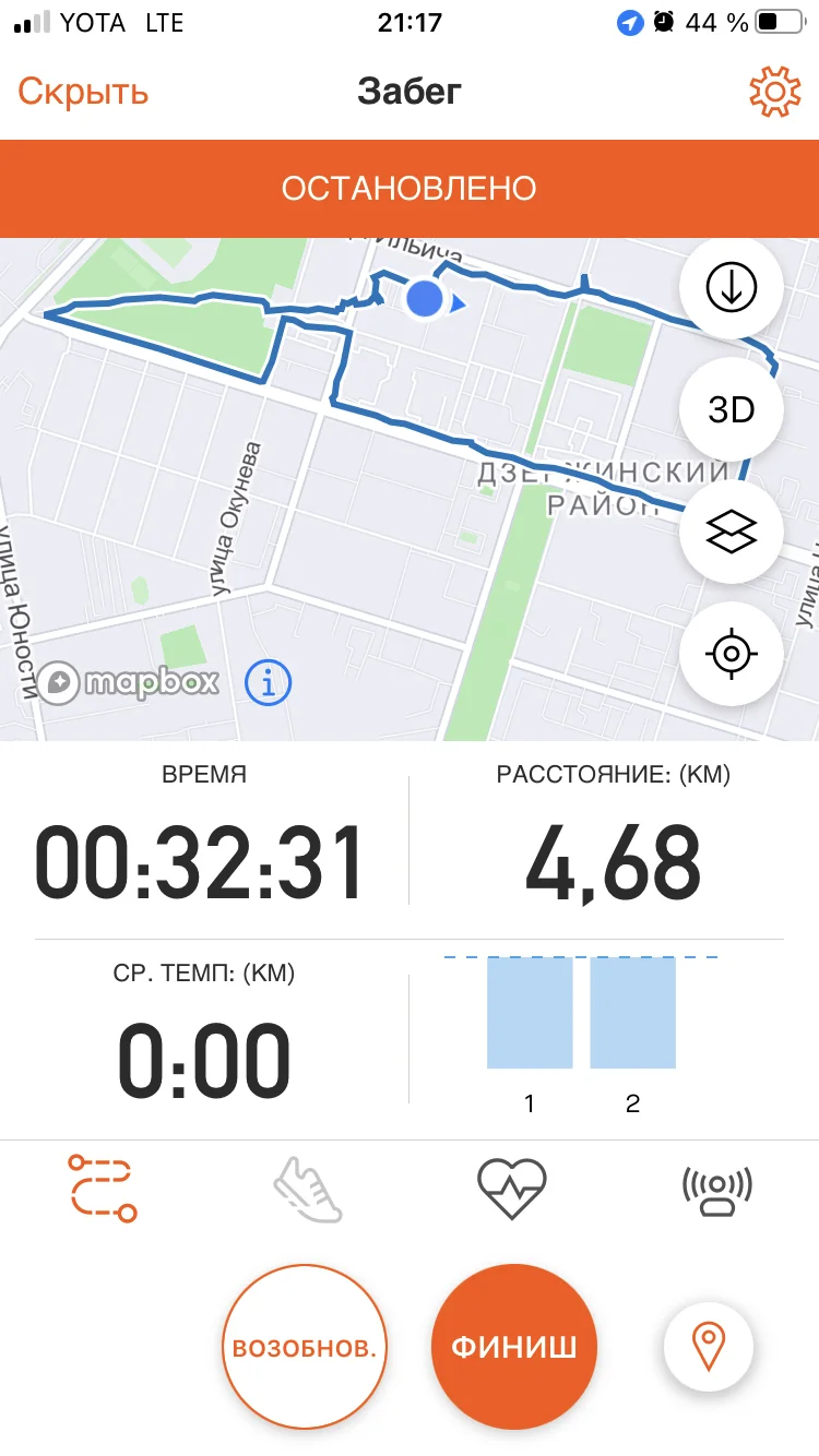 4. Скрин беговой программы "гармин".