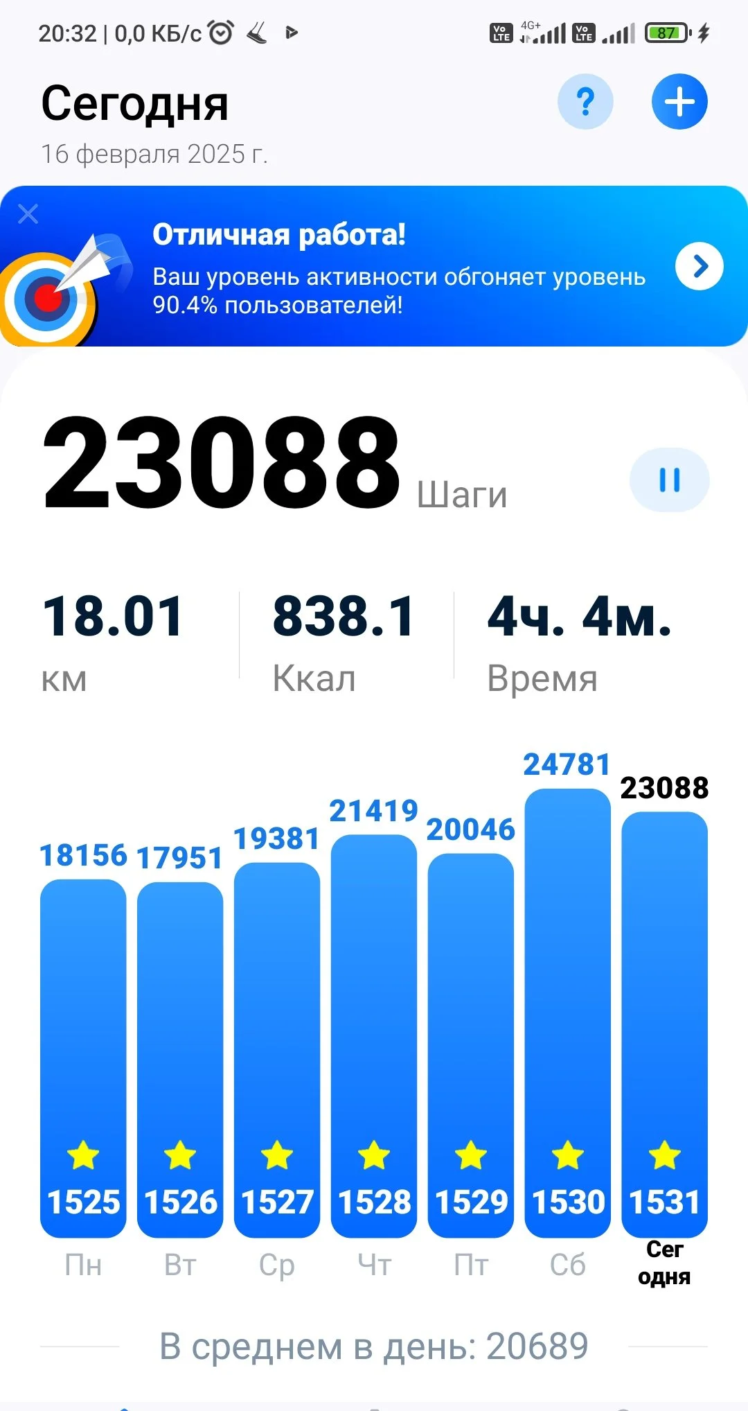 16.02: ходьба, бег : 17.70