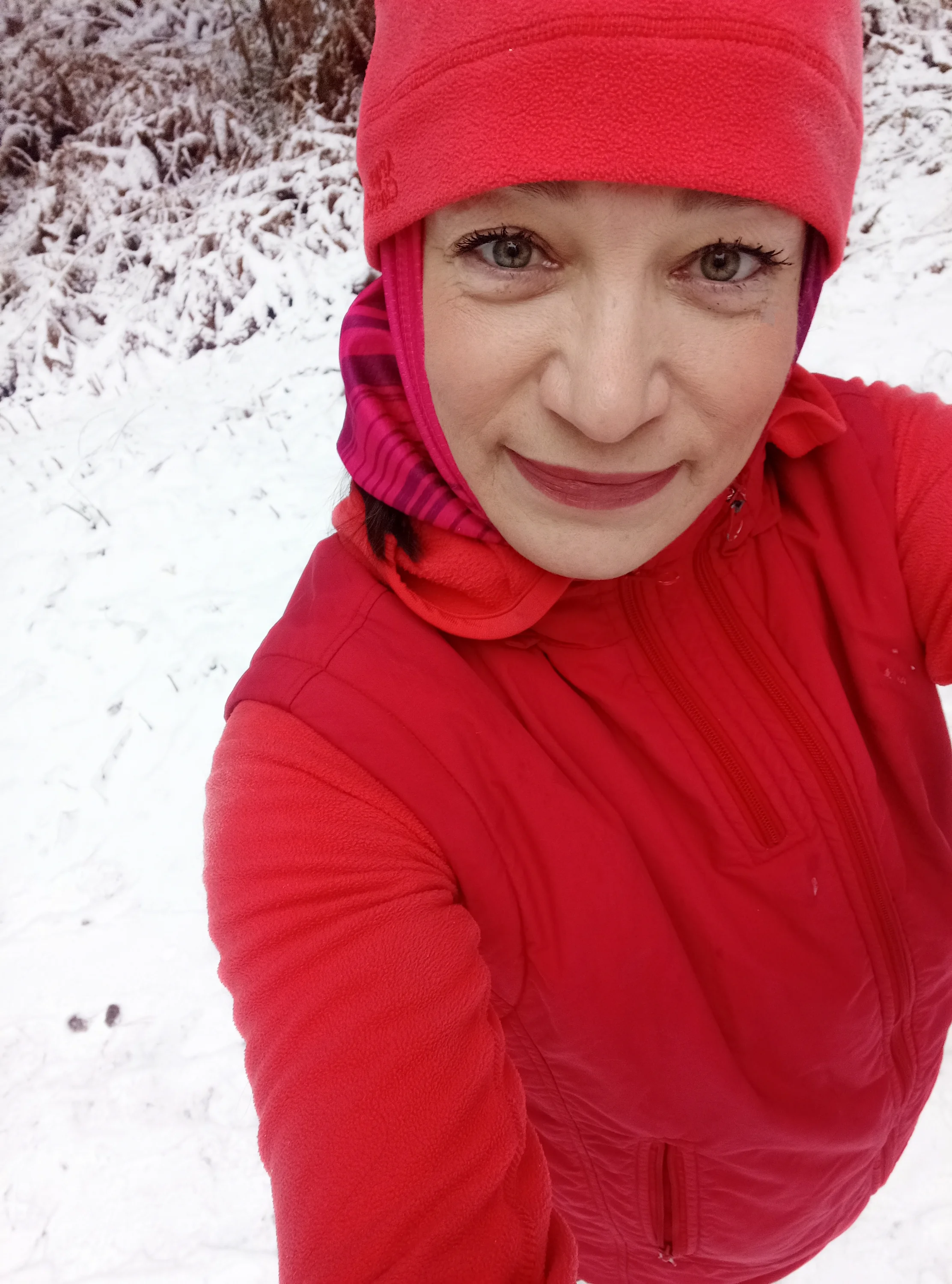 Забег в пн, с утра во вт буквально пару км успела и потом 16 часов в аэропорту (задержка рейса), вернулись сюда - тут зима, метель, все серо, переметено, 5 км пробежала через силу и слегка заболела, успела выздороветь, на элипсе только по чуть-чуть ходила в это время (без фиксации). Потом погода наладилась и я еще раз успела побегать ))