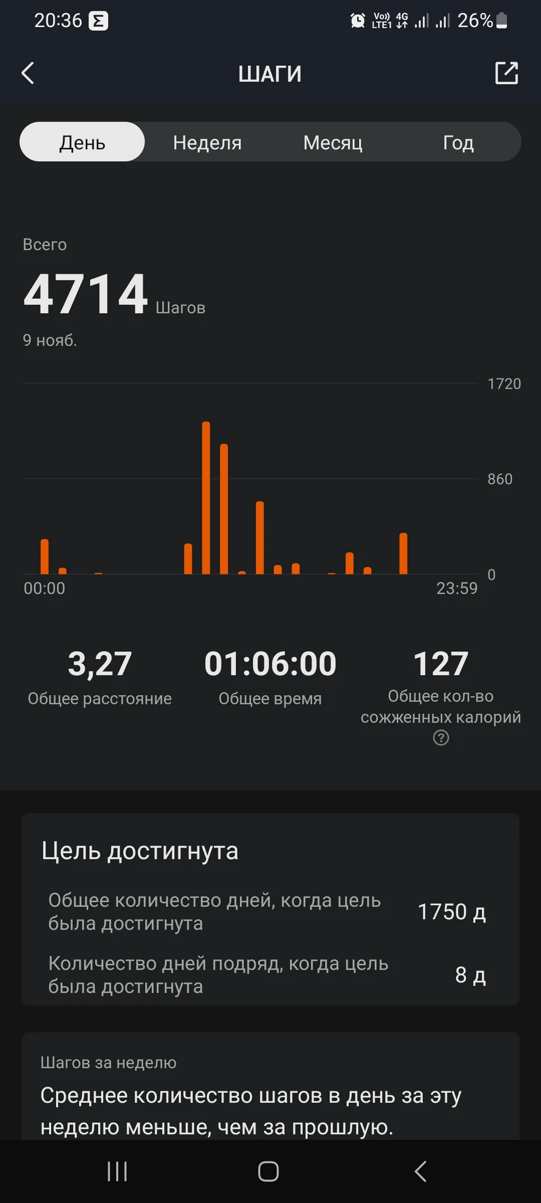 И с учётом ходьба улица за день получается так