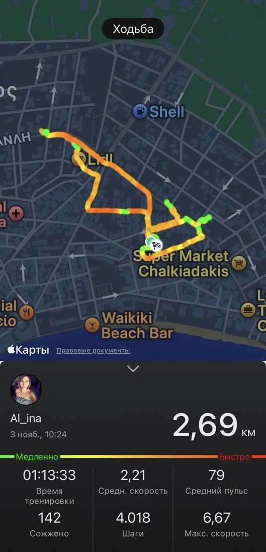 Ходьба 9, 68 км.