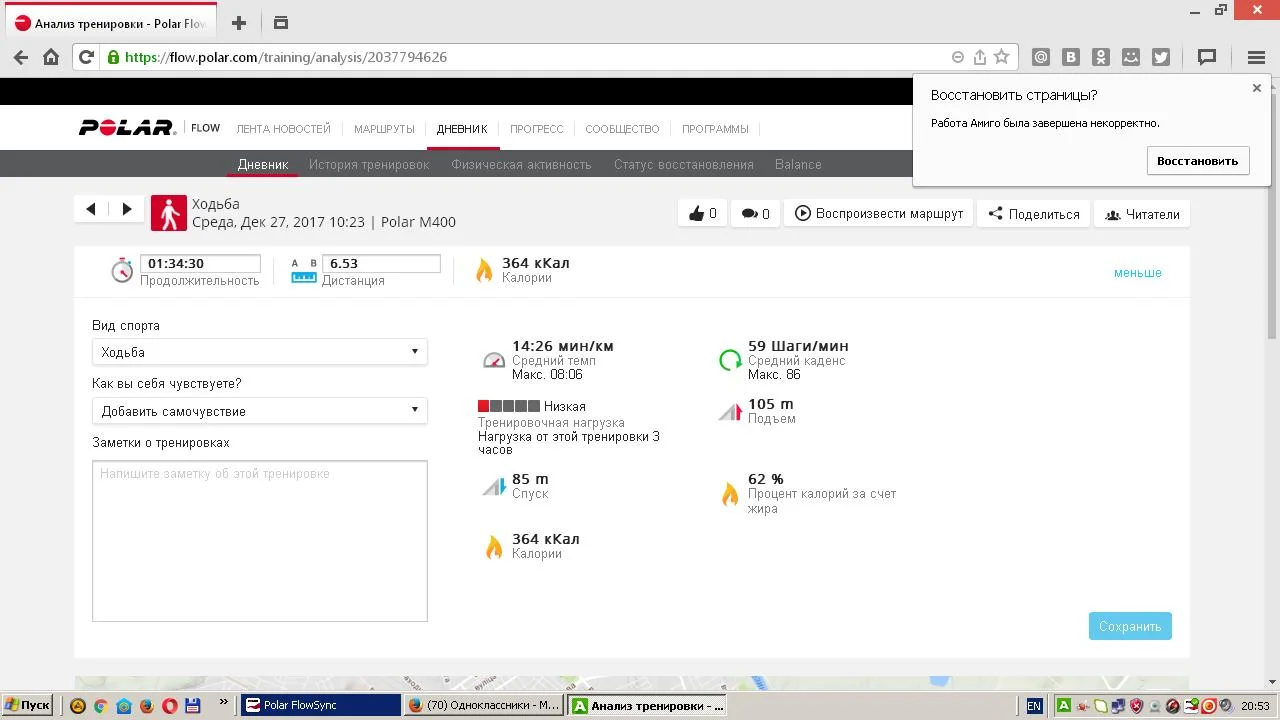 Отчет за 27.12.17.....2,7 км.......ходьба....вплавь......