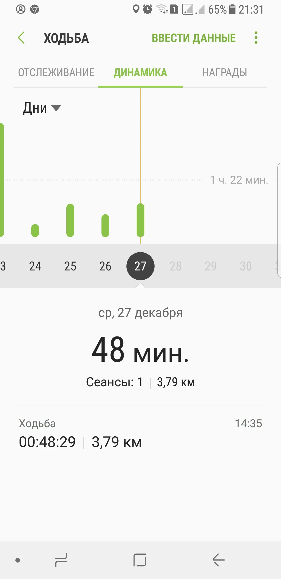 Отчет за 27 декабря ходьба 3.79 км.