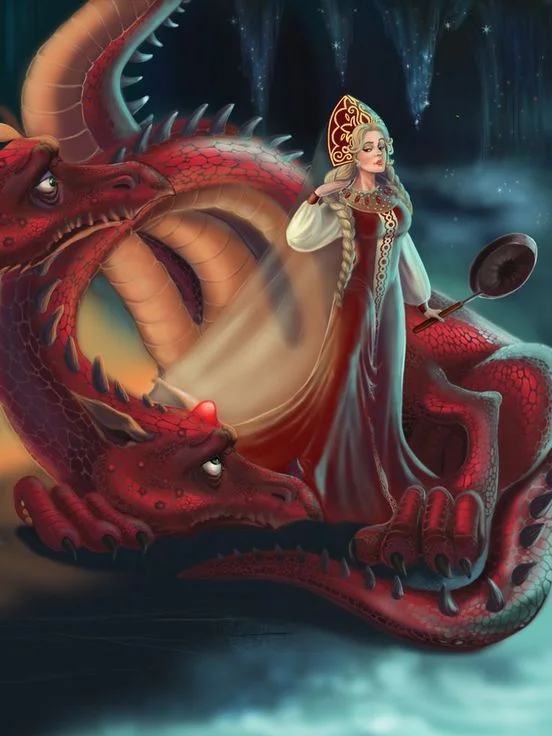 — Нравится? — радостно спросил дракон. — Видишь, всё для тебя! Ты столько раз жаловалась на дурацкое дно, к которому всё прилипает и пригорает. Мол, если бы не оно, ты бы готовила, как богиня… Так вот она — самая большая сковорода с самым антипригарным покрытием, какую я только сумел найти! Владей, любимая!