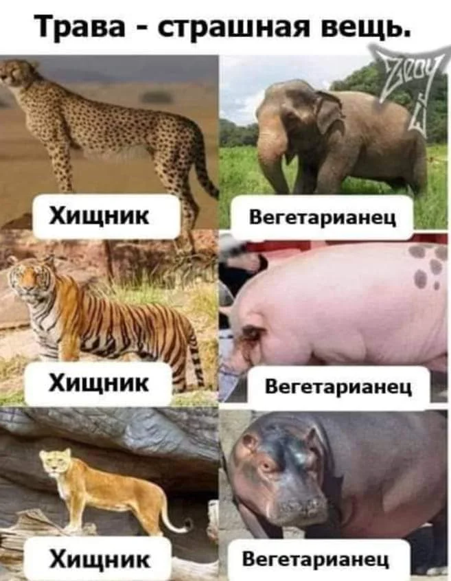 **Realistka** Жена и мать драконов 🐉 Команда форума V.I.P От сглаза Не пью 7 лет Штурман Сообщения 37.075 Реакции 101.632 Дневник Читать »» Не курю с 27.01.2019 Метод Авторский Лет курения 31 Непьем: »»» 23 Янв 2021 #9.462 OkSon написал(а): Посмотреть вложение 1350192 Нажмите для раскрытия... Так за травой то не нужно бегать... И, кстати, свиньи всеядны...Бегемоты скорее всего тоже...