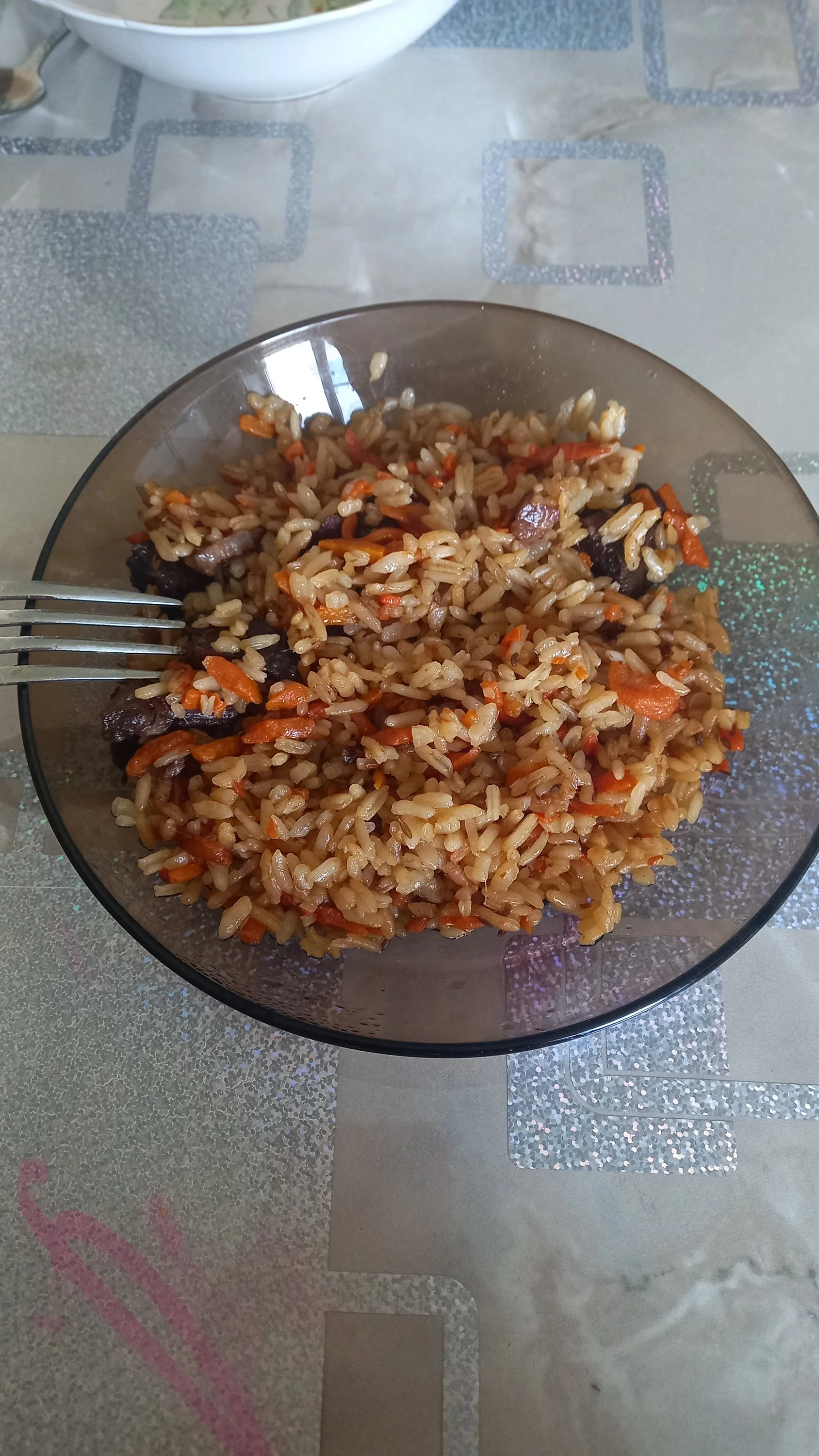 У нас в городе есть кафе/столовая, которую держат узбеки, мы так и называем "У узбеков". Короче там делают самый потрясающий плов, который я пробовала. Цена вот это этой порции 100 р. Когда бываем там, то обязательно с собой домой берём, оторваться невозможно! Угощайтесь!