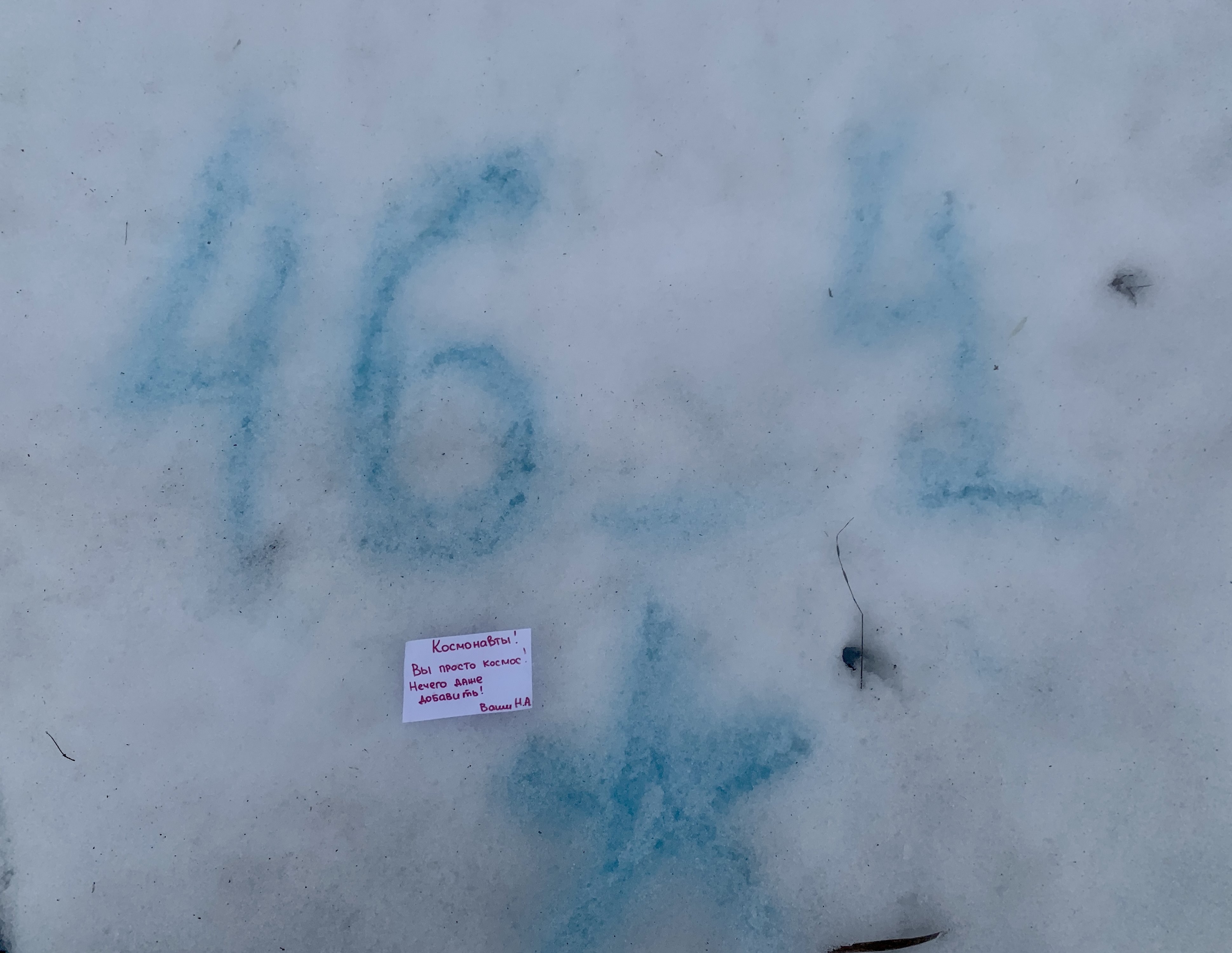 Преогромнейшее спасибоДорогие соседи! Поздравляем вас с успешным прохождением Самоделкина! Вы просто умнички? просто космос! Мы хотели для вас много написать на последнем снегу, но идёт очень сильный дождь и смывает все старания…простите?