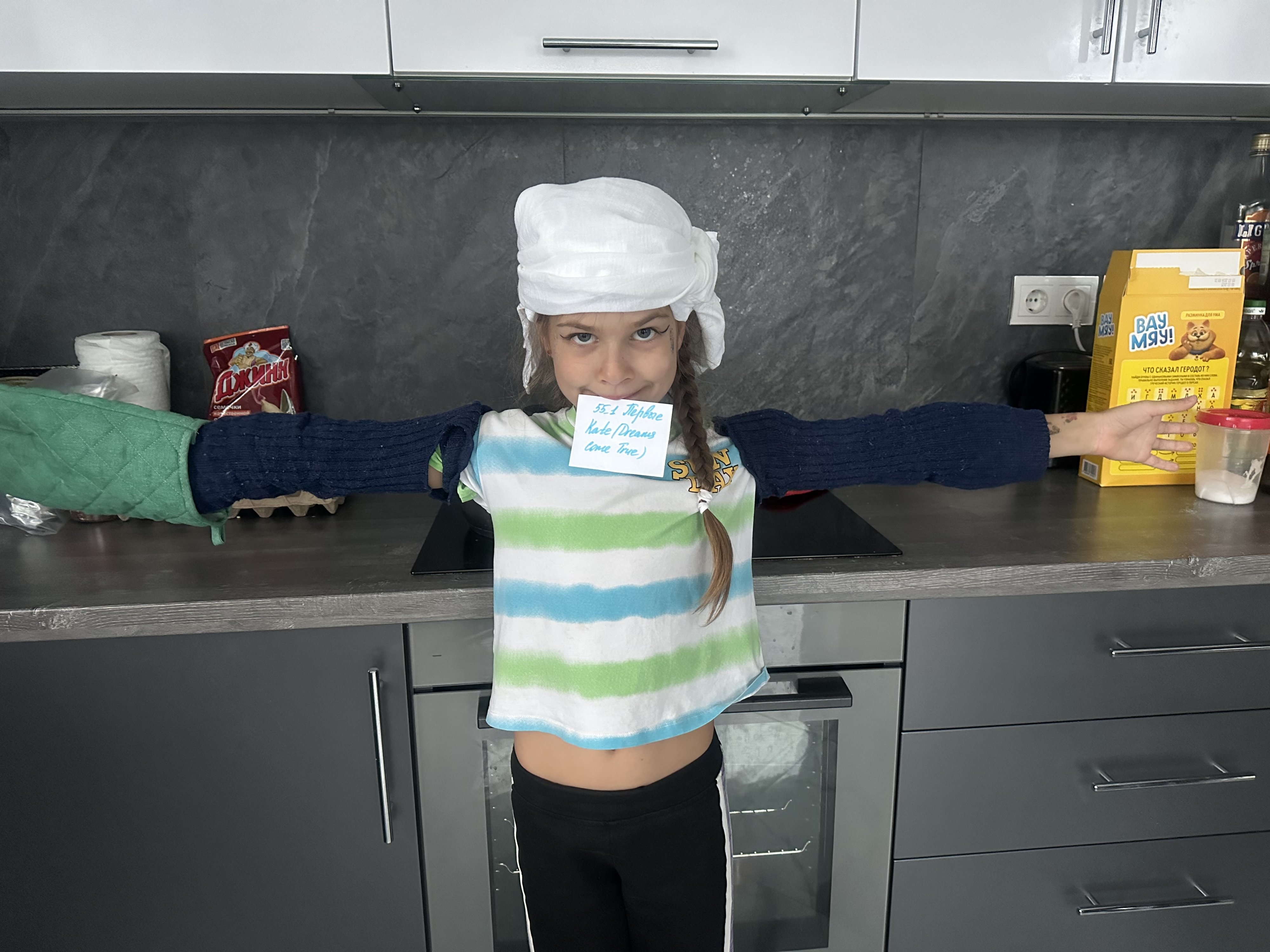 Сын в городе с бабушкой: тренировка поздняя + с утра выпускной. Сфотал нарукавники дистанционно дочкины.