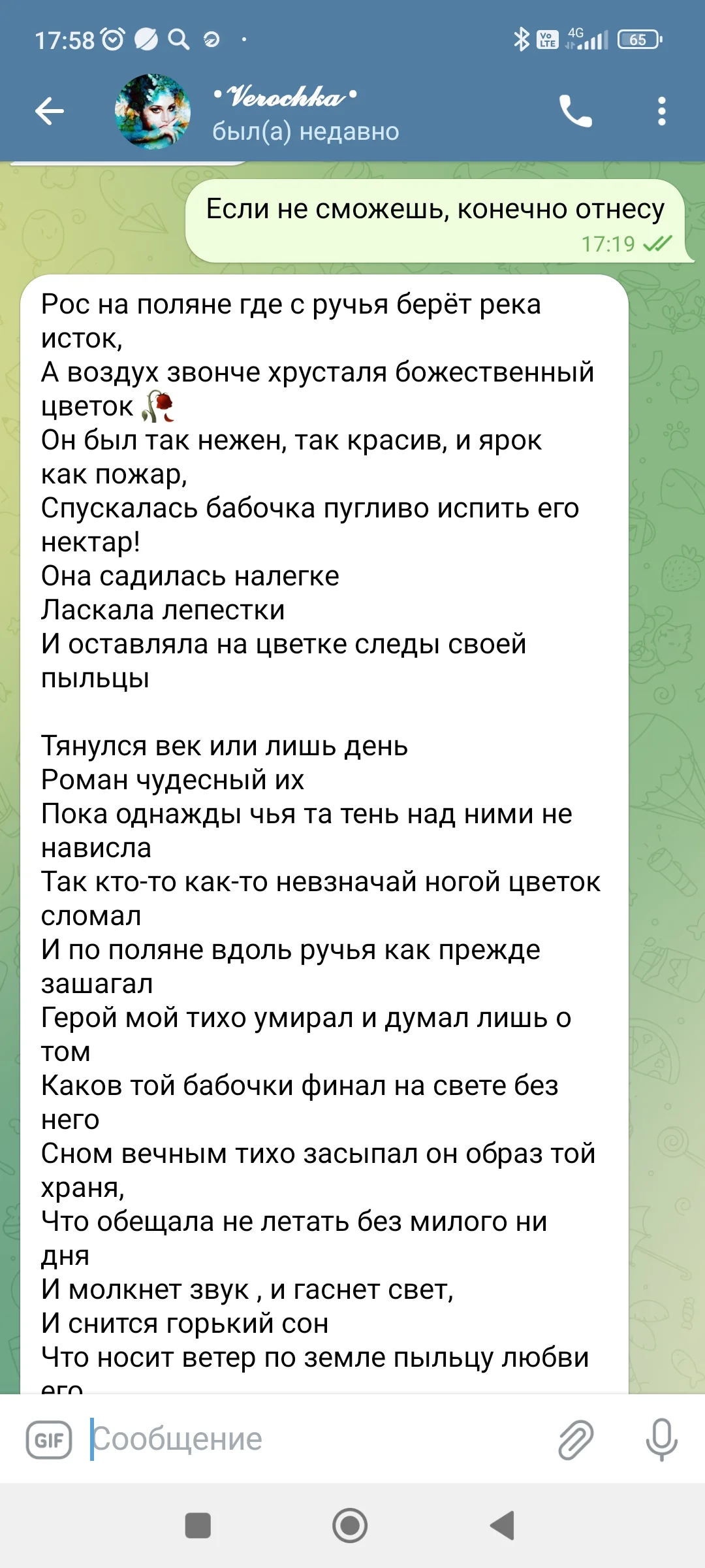 Спускалась бабочка пугливо испить его нектар!