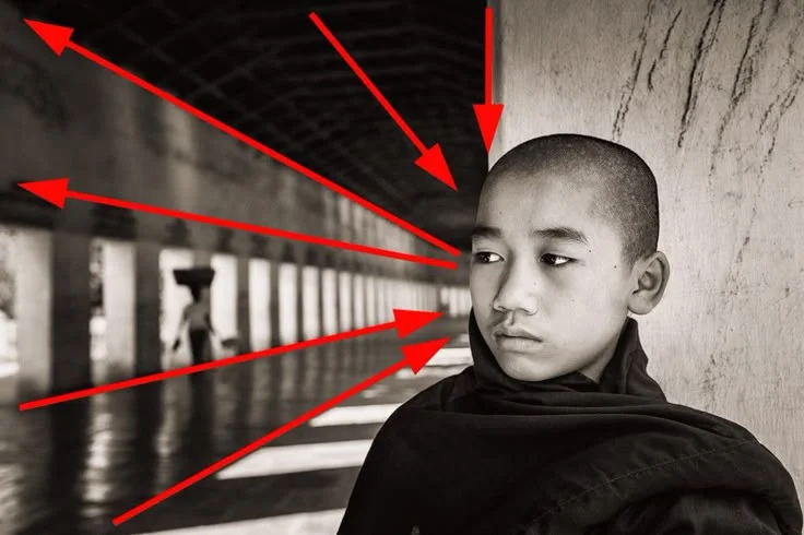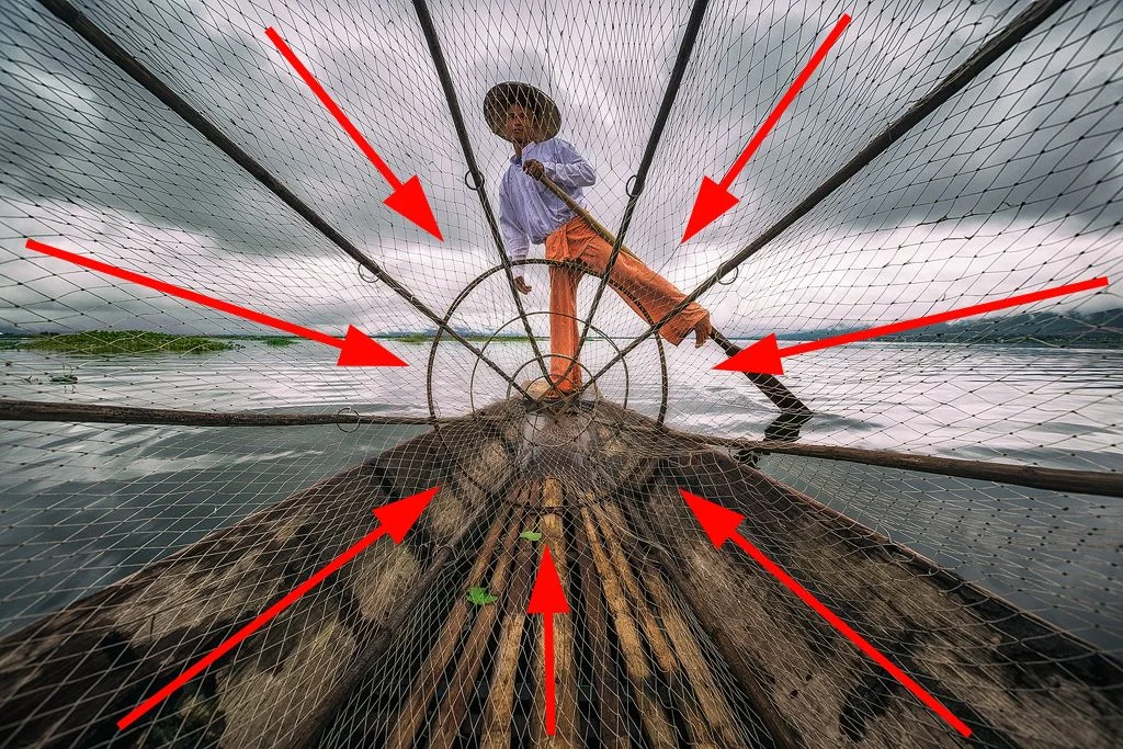- Ведущие линии — ведут взгляд зрителя к основному объекту или через весь кадр, создавая ощущение глубины и движения.