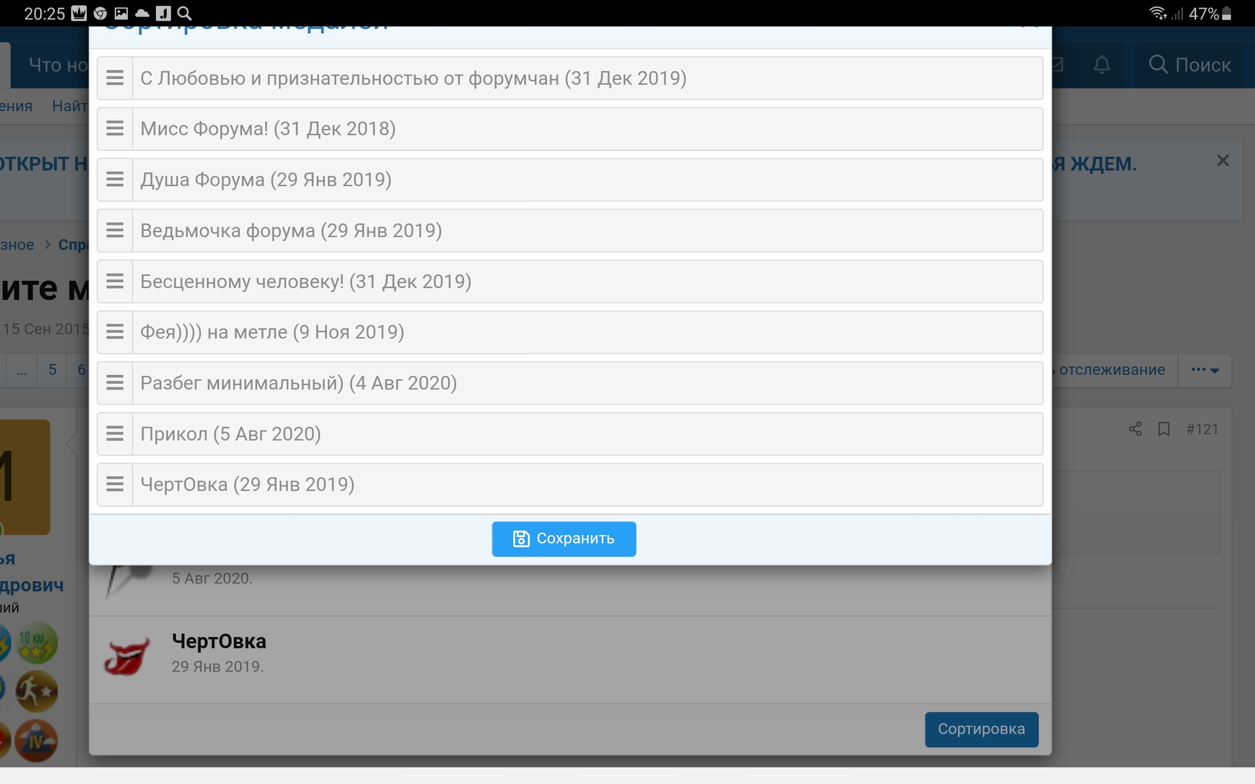 Нажимаешь сортировать и перетягиваешь медали в том порядке какой тебе нужен