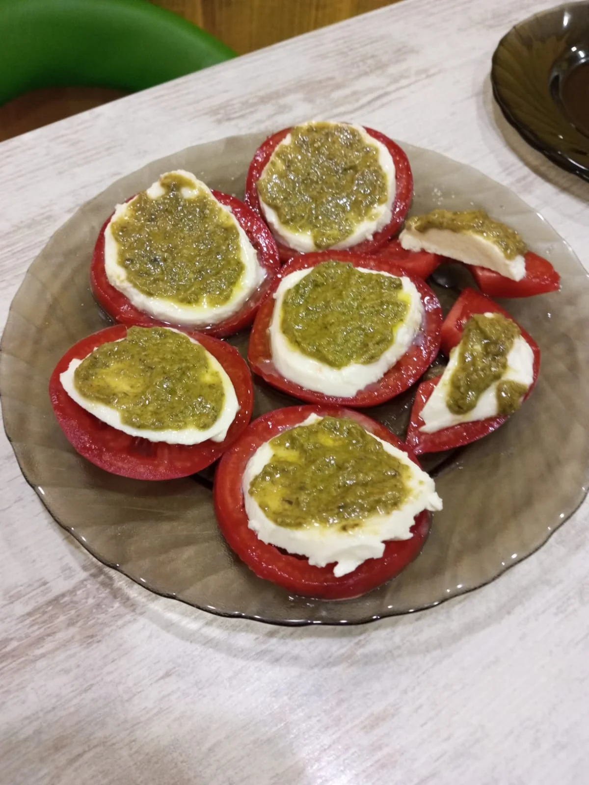 Да нет, капрезе со свежими листочками базилика, а не с песто)))не знала? это традиционный итальянский салат Капрезе.