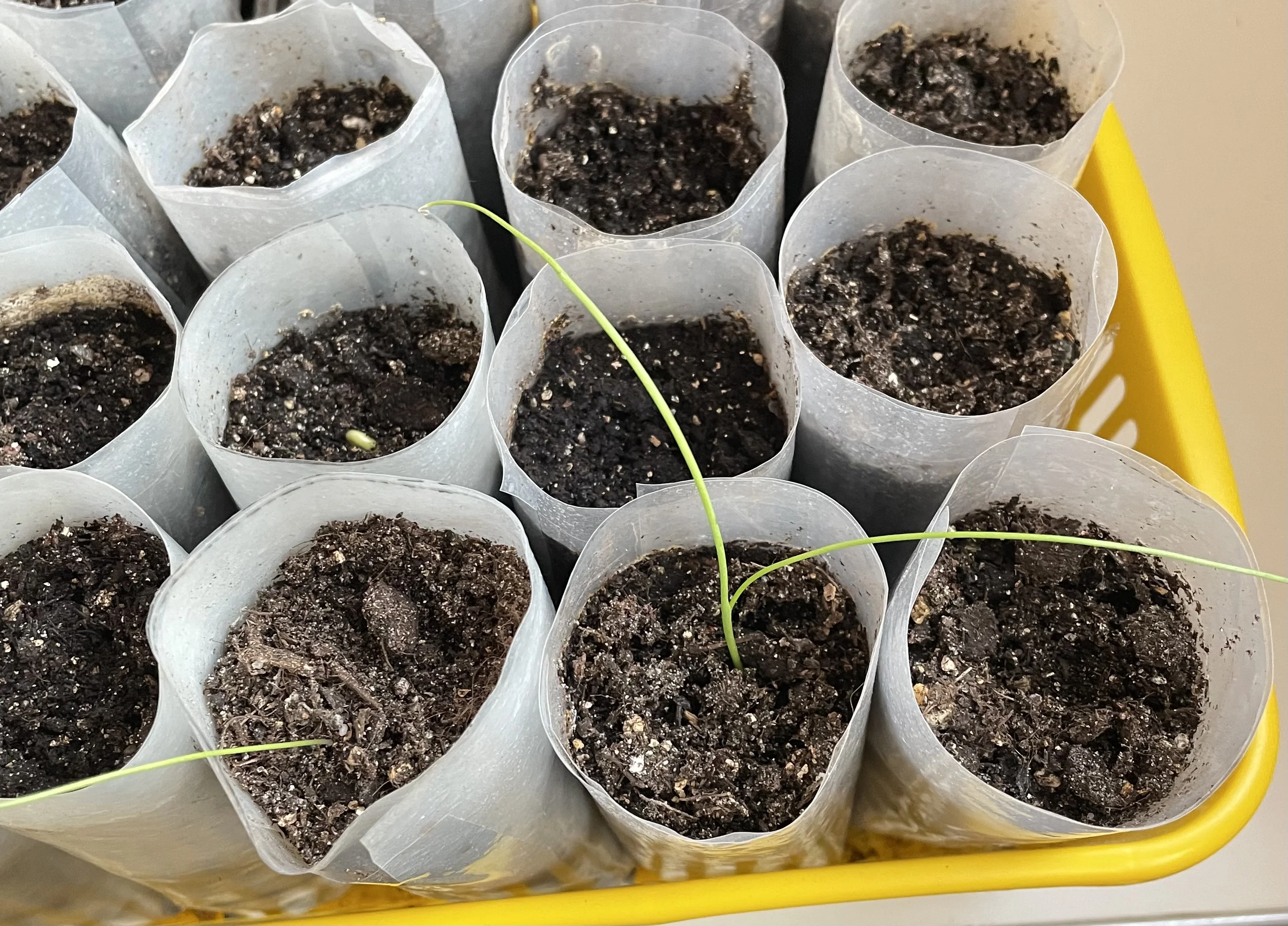 Чтобы не пустовали от невзошедшего лука кулечки, я туда посадила многолетний люпин. Взошел на третий день, но не весь еще