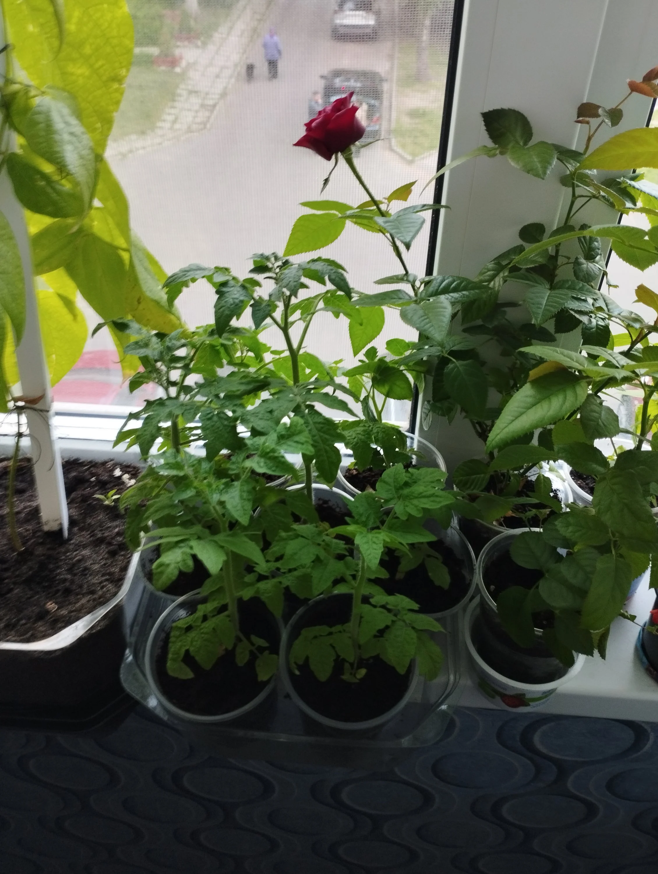 Гранатика веточка что чикнули сразу как приехал прижилась , дала новые веточки.Пока стоит под стаканчиком.Потеплеет сниму.Посмотреть вложение 2006756У розочки почти все бутоны распустились)Посмотреть вложение 2006760 Помидоры существенно подросли Посмотреть вложение 2006762Фасоль не фоткала- без изменений.