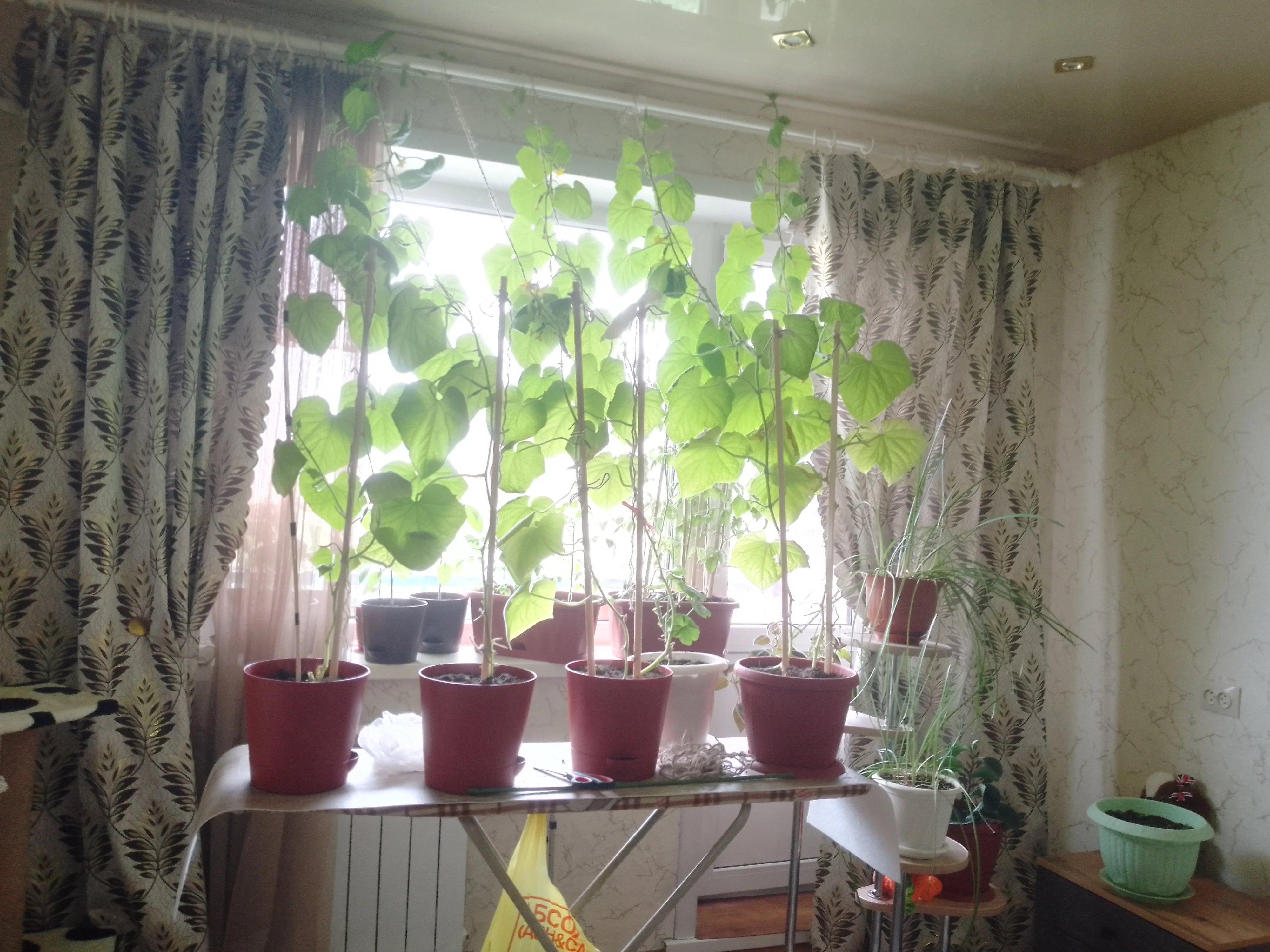 Что-то мой домашний огород, совсем не домашний. Огурцы скоро потолок выдавят Перцы с одним сортом помидор вроде еще норм, а второй сорт помидор тоже к небу стремится