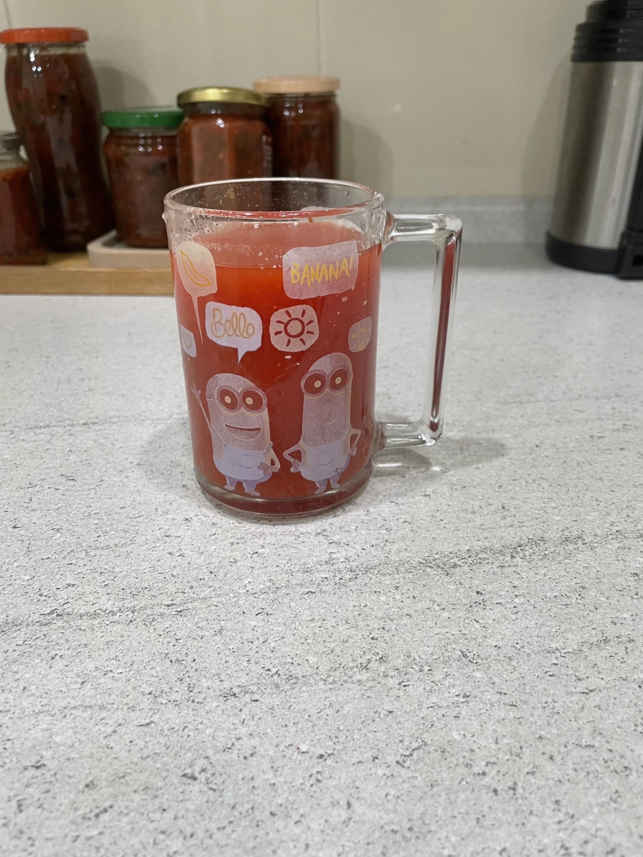 В этот раз мне попались довольно сочные помидоры, жидковато было. Поэтому при медленном побулькивании гуща осела на дно и я ложкой аккуратно слила в кружку полупрозрачную жидкость, гущу не затрагивала. Этот сок очень вкусный. Муж с удовольствием выпьет))