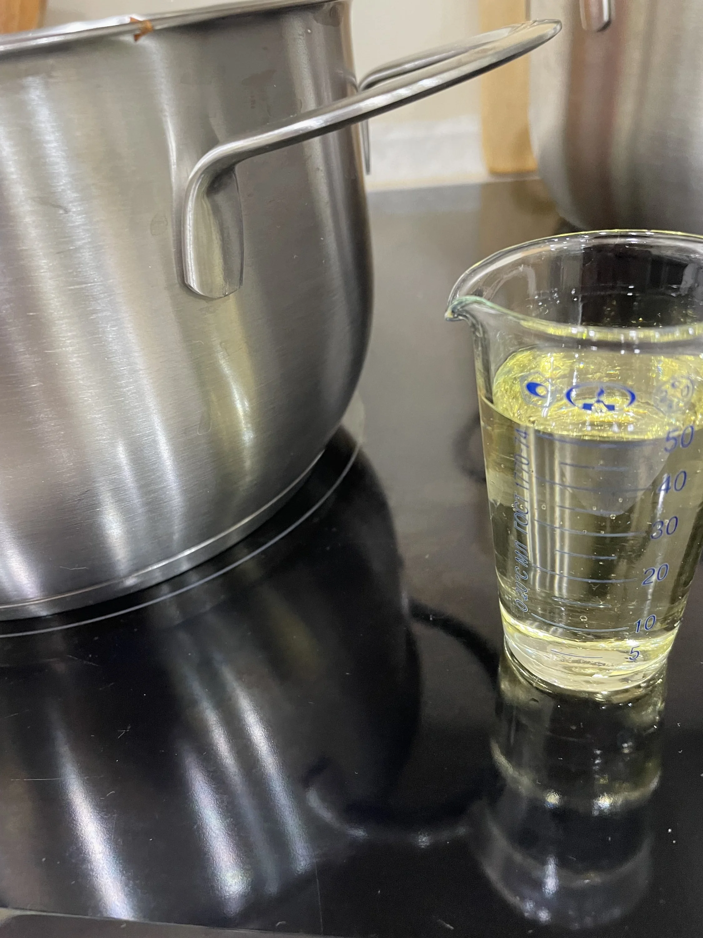 После того как основа прокипела 25 минут, вливаем 100 мл. масла. Я отмеряла мензуркой - два по 50))) Даем закипеть.