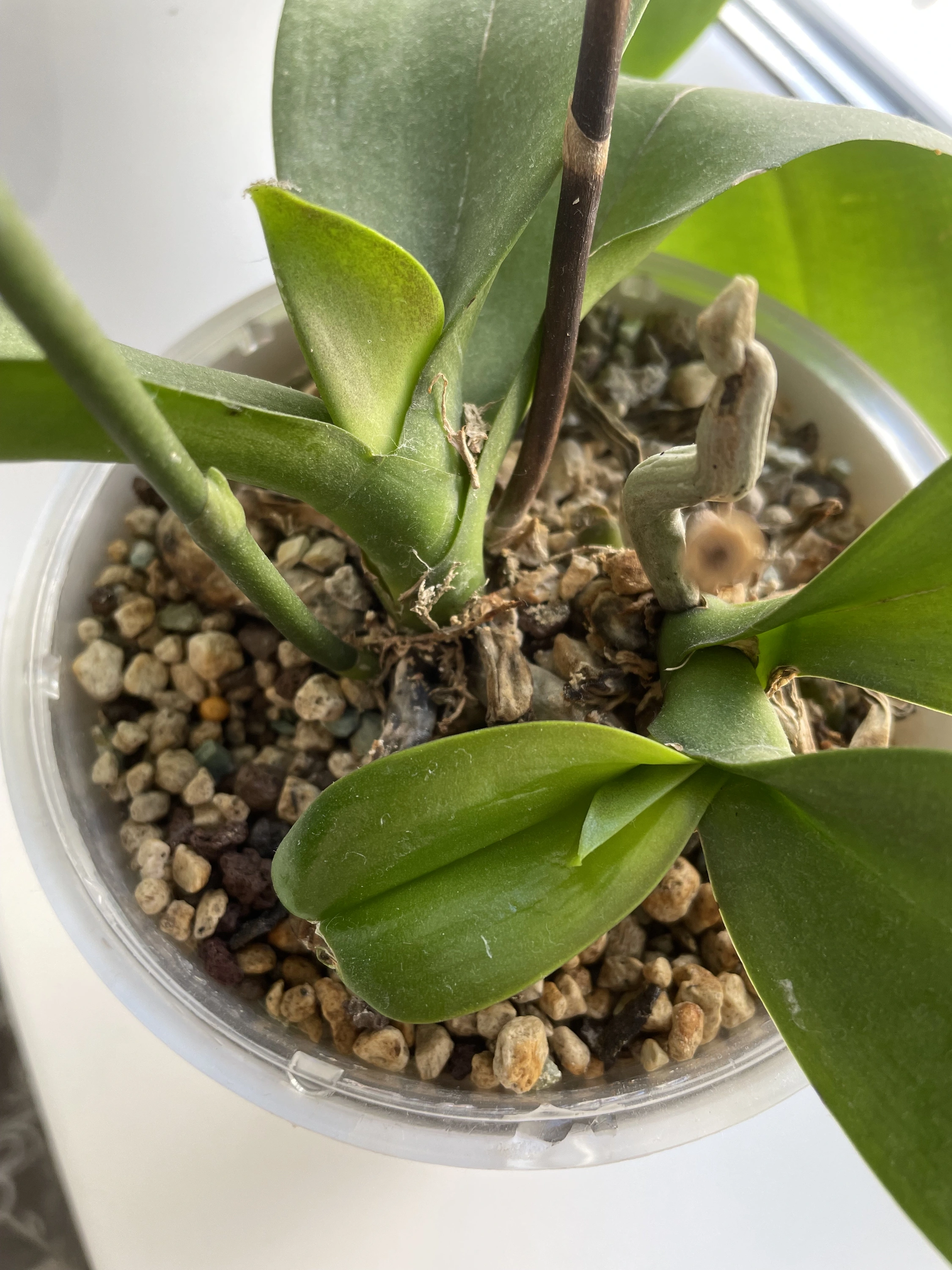 @Сладкая Булочка Привет 🤗. Моя страдальческая орха не умерла 😀. Месяц назад посадила в лечузу и вот результат :bounce: новые листочки, а корни ужас, новые не растут пока