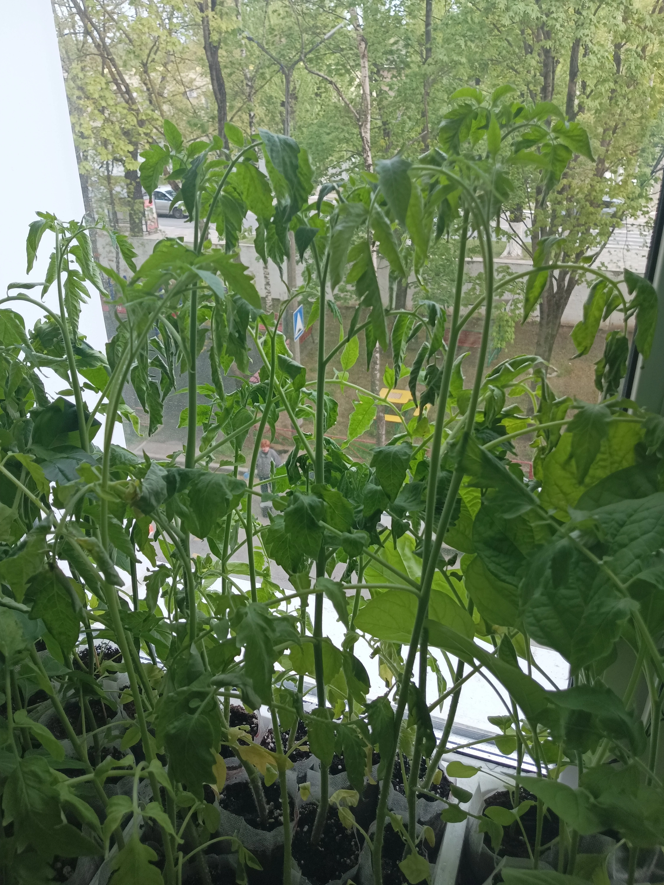 Томаты от закалки видать приуныли) как мои там на открытых окнах на даче не знаю, наверное тоже не слишком бодрые