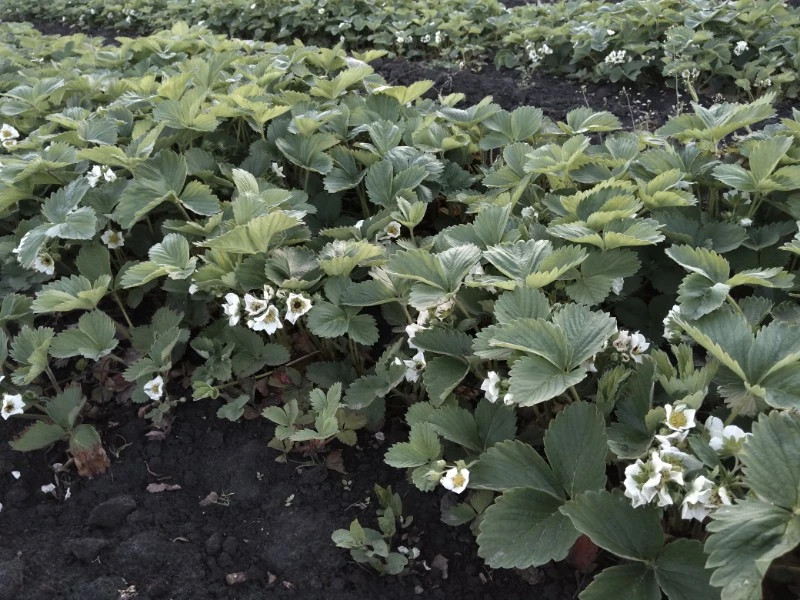 А вот цветет клубника. Если присмотреться, внутри некоторых цветков чернота. Померзли.
