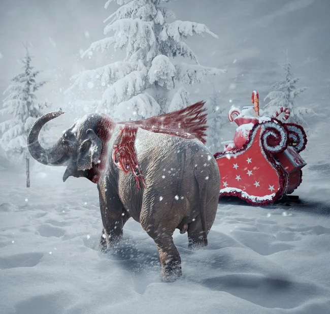 Весь такой улыбчивый...Ну чо ты не весел,хобот повесил?Ёлку порубил и выкинул. Иголки сжёг в печке. Полы пропылесосил. Ковёр выбил.