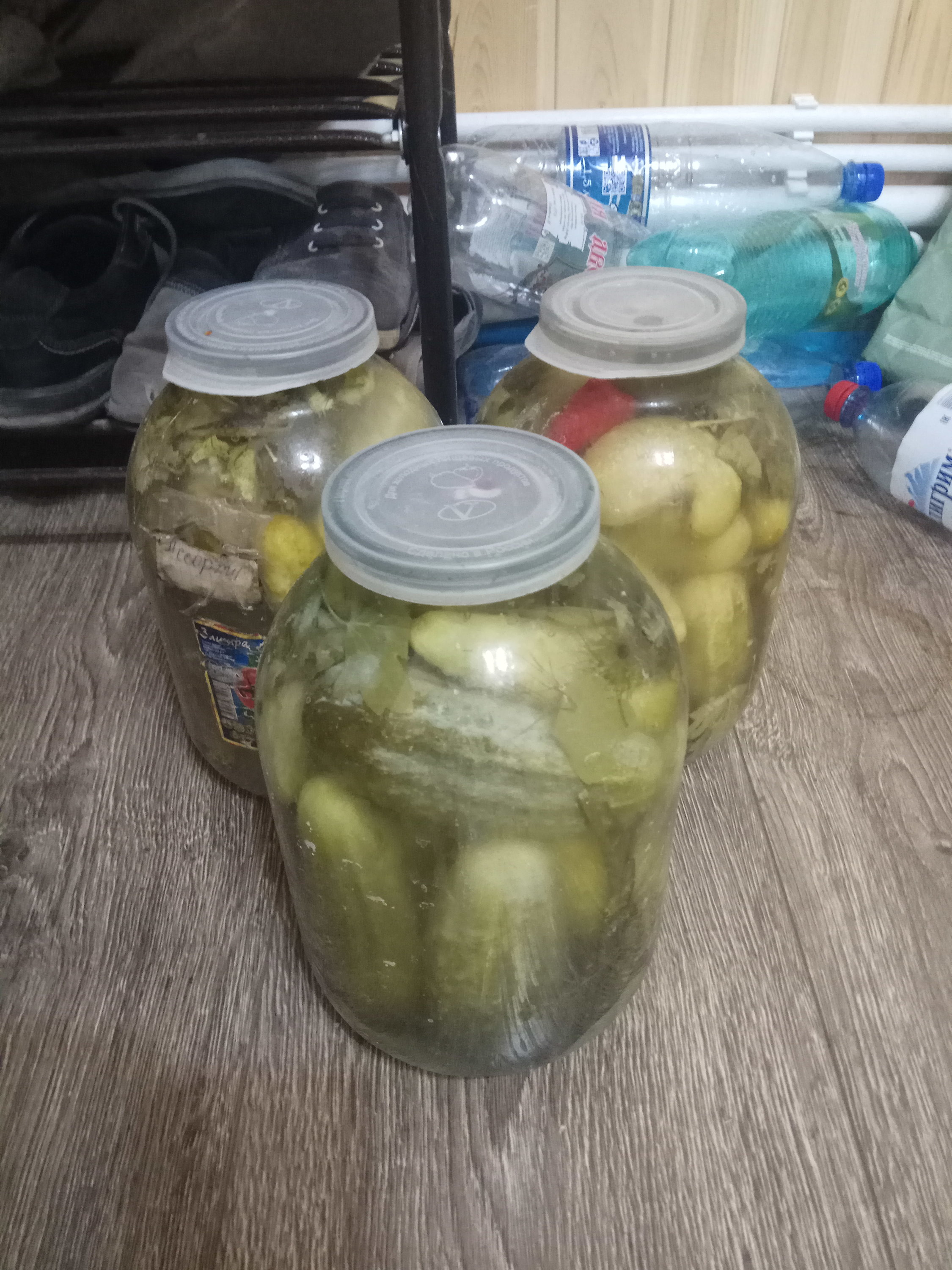 до этого 3 банки по 3 литра огурцов. процесс идёт))))